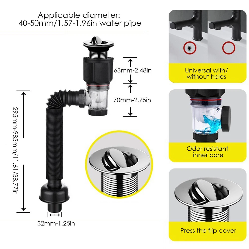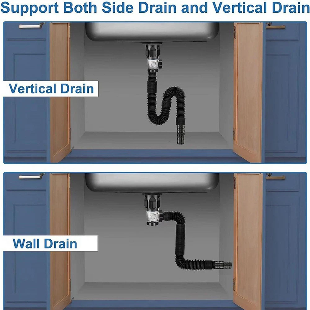 Drain Hose For Sink P-Trap Hose Sink Pipe Sink Extension Drain Pipe Flexible Product Description Bullet Points: High-grade Materials: Crafted from durable stainless steel and ABS, this sink drain pipe boasts unbeatable strength and resistance to wear. It ensures longevity and steadfastness for long-term use. Far from Universal: Prevent clogged drain pipes, water backflow, and unpleasant odor with this sink drain pipe. The unique features collect hair and debris, ensuring exceptional clog protection. Widely Applicable: Fitted with a silicone gasket, our Sink Drain Pipe is meticulously designed to fit a 1-1/2 inch sink hole diameter, creating a watertight seal without any additional joints. Enjoy leak-free plumbing with its versatile application for all kinds of sinks. Outstanding Craftsmanship: Our Sink Drain Pipe with rust-proof and erosion-resistant materials and round edges provides smooth water flow. The exquisite workmanship ensures no burrs or sharp edges, and its smooth appearance is fade-resistant. Upgrade your sink with this durable and reliable option. Effortless Installation: Install and remove this Sink Drain Pipe in seconds, with no other tools necessary. Its bendable and flexible design allows for easy fitting into any shape, saving you time and energy while providing a hassle-free solution. Say goodbye to clogged kitchen sink drains with our anti-clog plug design pipe. Flexible and expandable, it minimizes the need for extra joints, while its wear and fade-resistant materials ensure longevity. Upgrade to our reliable and efficient drain pipe today. Specification: Product material: stainless steel + ABS Scope of application: Basin installation Interface size: 32mm/1.25invh Applicable diameter: 40-50mm/1.57-1.96invh water pipe Product weight: 180 grams Product advantages: save space, deodorize Packing List: sewer pipe*1 Payment 1.PayPal is a preferred Payment method. if you Do NoT have a Paypal account, please go to www.paypal.com register. 2.You can make a Credit payment via Paypal.Paypal will let you use MasterCard,Visa to pay. 3.Payment should be completed within 3 days after auction closed, or unpaid dispute will be filed for an closing auction.An unpaid case will be filled after 4 days. Delivery details 1. We ship to many countries. 2. Delivery Time: Ship from China via Speedpak to US (takes 8-12 days) Ship from China via others shipping method to other countries (takes 15-60 days) 3. If you want to choose another address, please leave us a message on ebay.Please check your shipping address carefully before checkout,it can't be changed if order completed. Seriously promise:Refund or resend will be offered if item still not arrive in 7-10 business days. Just send us an email,we will give you a satisfied solution as soon as possible. Return policy 1.All item comes with Basic 3 Months Sellers Warranty, if item defective in 3 months,We will offer replacement without extra charger (including shipping fee) After we receive the defective item. If item Defective after 3 Month, Buyers can still send it back, We will contact suppliers or Manufactory for Warranty. Buyers Might Need pay the Shipping fee For resend the replaced item. 2.If item DOA(Dead of Arrival), Buyers can return it in 30 Days, we will replace it with new item after we receive DOA item. Please Contact us Before you sent the item back. 3.All item can be returned for exchange only. The buyer has responsibility for all return shipping including DOA or defective return. About Feedback When you receive the item and satisfied with the product, please leave positive feedback and 5 scores DSR. We will leave a 5 Scores DSR feedback for you. If, for any reason you are not satisfied with your purchase, please contact via Ebay Message and we will do our best to resolve it. Please don't leave neutral or negative feedback without any communition with .