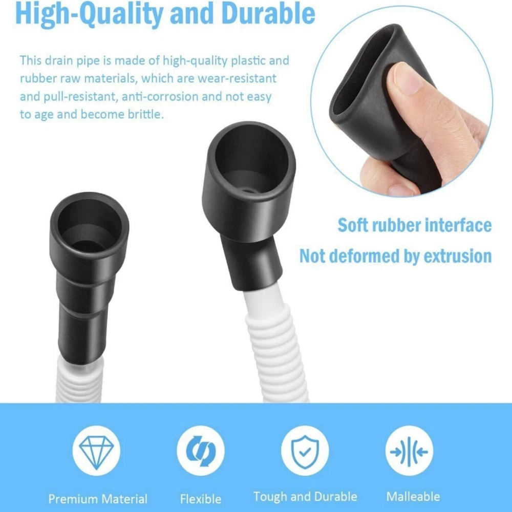 Features: 1. Dishwasher Drain Hose: Dishwasher drain hose is connected to the pump located below the lower spray arm. It helps to make proper dishwasher drainage. If the drain hose is damaged, it causes leakage. So buying a new hose to replace the broken drain hose is the best choice. 2. Wide Application: 807117001 dishwasher drain hose is compatible with most of Frigidaire, White Westinghouse, Kelvinator, Gibson, Kenmore, Sears, Tappan, Electrolux, Crosley, Admiral and Universal dishwasher models. 3. Part Number Replacement: AP5806794, PS9494138, 154753201, 154369601, 154411001, 154411002, 154411003, 154525301, 154606701, 3276641, 5304435286. 4. High Quality Material: Drain hose is made of high quality plastic and rubber, with durable and great connection performance, provides better sealing, you can stop washing your plates, bowls, cups and more by hand. 5. Satisfaction Guarantee: If you have any questions about our 807117001 dishwasher drain hose , please contact us at first time. We are glad to solve the problem you meet and we support refund within 30-Day guarantee, 12-Month warranty for quality-related issues. Descriptions: Dishwasher Drain Hose Application: 807117001 dishwasher drain hose is compatible with most of Frigidaire, White Westinghouse, Kelvinator, Gibson, Kenmore, Sears, Tappan, Electrolux, Crosley, Admiral and Universal dishwasher models. Part Number Replacement: AP5806794, PS9494138, 154753201, 154369601, 154411001, 154411002, 154411003, 154525301, 154606701, 3276641, 5304435286. Function: Dishwasher drain hose is connected to the pump located below the lower spray arm. It helps to make proper dishwasher drainage. If the drain hose is damaged, it causes leakage. So buying a new hose to replace the broken drain hose is the best choice. Package Included: 1Pcs Drain Hose for Frigidaire and Electrolux dishwashers
