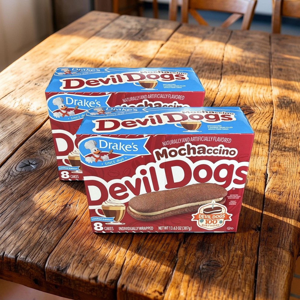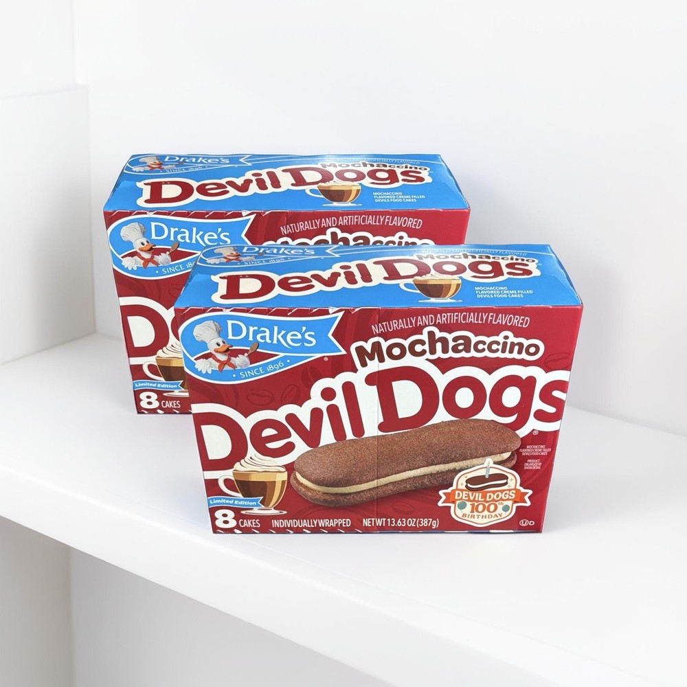<< The item is a Size 2 Packs >> Stock up on the bold new flavor with this Drake’s Mochaccino Devil Dogs 2-Box Bundle. Each order includes two full boxes of Mochaccino Devil Dogs, combining rich chocolate cake with smooth, coffee-inspired crème filling. Perfect for fans of mocha flavors and classic snack cake lovers looking for something new. Great for sharing, gifting, or keeping your pantry stocked with this exciting twist on a classic favorite. ☕🍫 Drake’s Mochaccino Devil Dogs – 2 Box Bundle ✨ Love mocha flavor? This bundle includes 2 full boxes of Drake’s Mochaccino Devil Dogs , the bold new twist on a classic favorite. 😋 Each snack features soft chocolate cake sandwiches filled with smooth, coffee-inspired crème for a rich and satisfying treat. Perfect for snack time, sharing, or stocking your pantry. ☕🍫 Why You’ll Love It: ☕ Two full boxes included 🍫 Chocolate cake with mocha-style filling ✨ Limited flavor option 🎁 Great for sharing or gifting Bundle Includes: 2 boxes Mochaccino Devil Dogs Ingredients: Contains wheat, milk, soy and eggs. Nutrition facts: See individual packaging. ✨ Double the mocha, double the indulgence — grab this flavor while available! ☕🍫 #Drakes #DevilDogs #Mochaccino #SnackCakes #MochaFlavor #LimitedEdition **Note Items will have shelf life of 1-3 Weeks upon receipt, it is stocked fresh weekly every week and these will be the best possible dates at any given time 2 Packs Stock up on the bold new flavor with this Drake’s Mochaccino Devil Dogs 2-Box Bundle. Each order includes two full boxes of Mochaccino Devil Dogs, combining rich chocolate cake with smooth, coffee-inspired crème filling. Perfect for fans of mocha flavors and classic snack cake lovers looking for something new. Great for sharing, gifting, or keeping your pantry stocked with this exciting twist on a classic favorite. Includes 2 full boxes of Mochaccino Devil Dogs || Chocolate cake sandwiches with coffee-inspired crème filling || Limited flavor twist on the classic Devil Dogs || Perfect for mocha lovers and snack cake fans || Great for sharing or stocking up