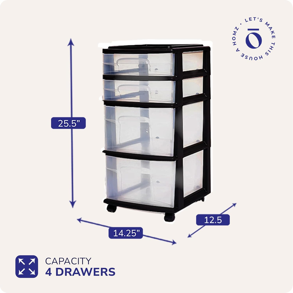 Store New Arrivals Add to Favorite View Feedback Contact Drawer Tower, 4-Tier Clear Plastic Storage Organizer Cart, Black Frame Description Item model number 05564BKDC.01 Item Package Quantity 1 Style 4 Drawers (Set of 1) Assembly Required No Part Number 05564BKDC.01 Color Clear/Black Pattern Storage Cart Material Plastic Batteries Required? No Certification certified frustration-free Item Weight 7.65 pounds Batteries Included? No Frame Material Plastic Number of Drawers 4 Global Trade Identification Number 10073527171093 Size 1 Pack Product Dimensions 12.5"D x 25.5"W x 14.25"H Included Components Medium Cart^ Plastic Storage Cart: Perfect the art of hiding your hoard with the HOMZ storage drawer set. This plastic cart is made to fit anywhere you need organizing power, whether at home or work. Space Saving: This cart has 4 roomy storage drawers and a small vertical footprint. The cart measures 12.5" L x 14.25" W x 25.5" H, while each biggest drawer interior measures 12.31" L x 9.92" W x 6.85" H and each smallest drawer interior measures 12.31" L x 9.92" W x 3" H. It Will Fit: Our rolling storage drawers feature clear plastic materials and removable wheels for easy transportation. Use them to store toiletries, office supplies, crafts, and more. From Trash to Treasure: Life in plastic is fantastic when the plastic is made from 90% recycled materials. We know the earth is important to you, so our cart is good for your items and the planet. HOMZ for Your Home: From organization to storage, we have the container that you are looking for. Allow us to make your house a HOMZ. Product Description 4 Drawer Comparison Table Black Frame Color Black Clear Cart Color Clear 12.5Dx14.25Wx25.5H Dimensions 14.25Dx12.5Wx39.31H Black Frame Color White Clear Cart Color Clear 12.5Dx14.25Wx25.5H Dimensions 14.25Dx12.5Wx39.31H Black Frame Color Black Clear Cart Color Clear 12.5Dx14.25Wx25.5H Dimensions 12.5Dx14.25Wx25.5H 6 Drawer 6 Drawer 3 Drawer ABOUT US We offer the best prices around on high quality products. Our E-store includes media such as books, movies, music and games while offering electronics, toys, sporting apparel, clothing, tools, general home, garden items and more. SHIPPING We are always working hard to ensure your package arrives as soon as possible. Please understand that some factors like weather, high postal traffic, and the performance of shipping companies are outside of our control. We offer free shipping to the lower 48 states and ship within 2 business days of payment, usually sooner. We do not accept P.O. Boxes. Please provide a physical address. For shipping outside of the continental USA, we only use eBay's Global Shipping Program.The item is shipped to KY and then sent to the rest of the world. International customers are responsible for all duties and taxes. Continue to check out in order to calculate costs for shipping the item to your country. Messages regarding eBay's Global Shipping Program MUST be directed at eBay EXCLUSIVELY. RETURNS We offer a 30-Day Return Policy on items which you are not completely satisfied with. You have the option for a full-refund or an exchange of the item. No returns are available on items shipped outside of the USA. PAYMENT We accept PayPal. CONTACT US This page content is yet to come Please ad us to your favorite seller and visit again later Thank You CUSTOMER SATISFACTION We try our very best to make sure every customer is completely satisfied. If there's a problem, message us! We're happy to help. WE ACCEPT Copyright © 2021 AutoDS. | All Rights Reserved