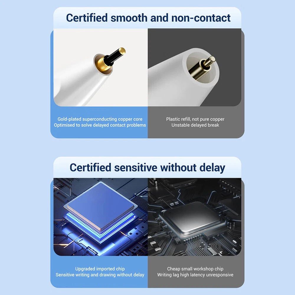 Product Description Features: -Bluetooth display: Through Bluetooth connection, the battery level is displayed in real-time, allowing you to keep track of usage and no longer worry about low battery. -Magnetic charging: It adopts a magnetic charging design, which is convenient and fast. With just a gentle suction, you can start charging. Say goodbye to tedious insertion and removal operations, and make your use more efficient. -Full screen anti accidental touch: The specially designed anti accidental touch function allows you to no longer be troubled by accidental touch during full screen operation, ensuring that every operation is accurate and error free. -Sensitive without delay: A highly sensitive touch experience with no delay response, allowing you to enjoy a smooth and smooth experience while drawing, taking notes, or any touch operation. Specifications: -Type: Writing pen -Quantity: 1 piece -Color: White -Applicable:fit for iPad Pro / Air 11" 13" 2024 for iPad 5/6/7/8/9/10th Gen 2017-2022 for iPad Pro 1/2/3/4th Gen 11" 2018-2022 for iPad Pro 3/4/5/6th Gen 12.9" 2018-2022 for iPad Mini 5/6th Gen 2019/2021 for iPad Air 3/4/5th Gen 2019-2022 Packaging included: 1 * Writing pen 1 * Product manual