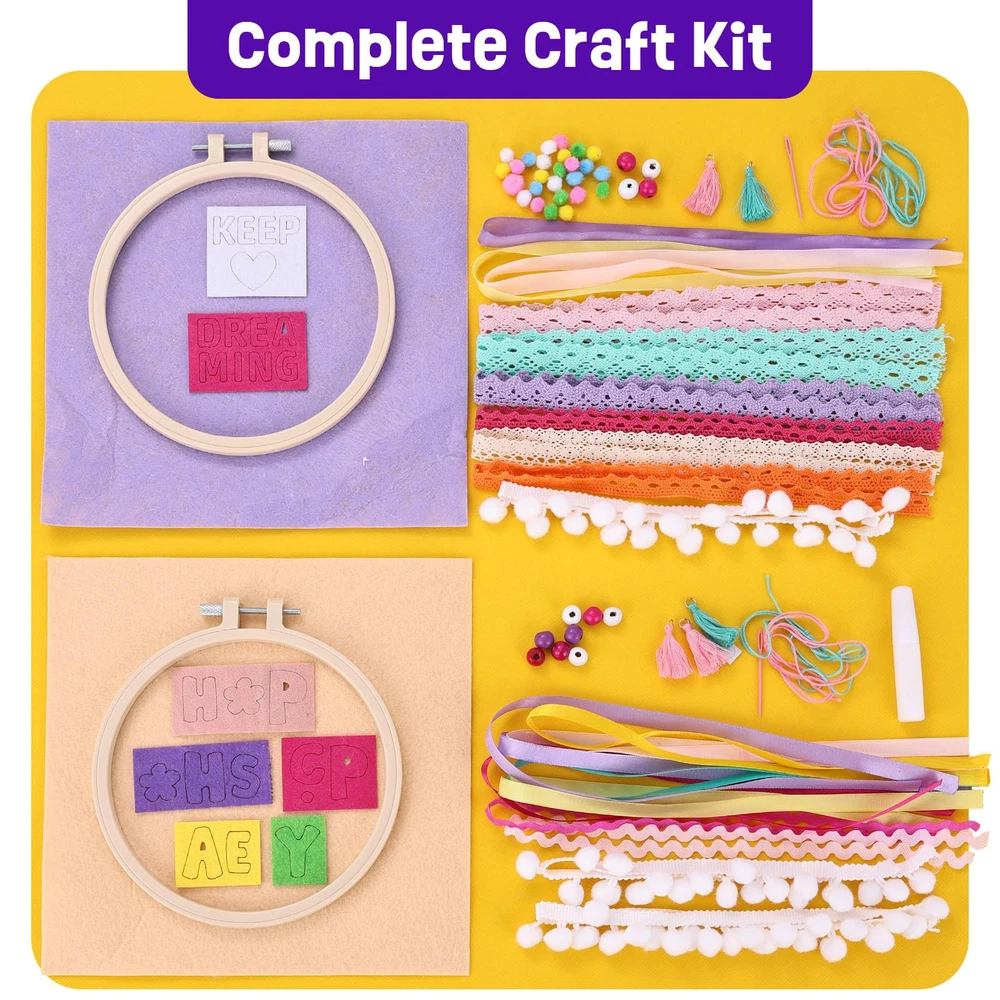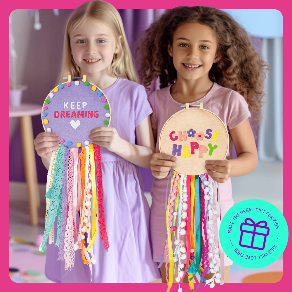 2 SET DIY DREAM CATCHER: Package comes with 39+ pcs to make 2 colorful dream catchers. Once completed, the Dream Catcher transforms into a charming home decoration. Perfect arts & crafts set for girls ages 6-12 to do. INSPIRING CREATIVITY: The Craft kit help improve children's motor skills, build confidence and cultivating their hands-on ability - all while having a blast and expressing their creativity! PERFECT FOR ALL AGES: Whether you're a kid, teen, tween, or an adult, this dream catcher kit for and adults is an enjoyable activity. Suitable for ages 6+ , it's a delightful gift for anyone who enjoys arts and crafts. WIDE APPLICATIONS: The craft kits are suitable for outdoor and indoor decorations, such as bedrooms, living rooms, gardens, balconies, window,door and photo walls, they can also be a great gift idea for birthday parties, classroom activities,spring parties, Mother's Day, Children's Day Christmas Day,Halloween Day or other holidays. FUN BONDING ACTIVIT: Make-your-own dream catcher kits are a great hobby, weekend pastime or bonding activity with family and friends. Reduce your 's screen time by giving her educational, enjoyable and entertaining crafts to do.