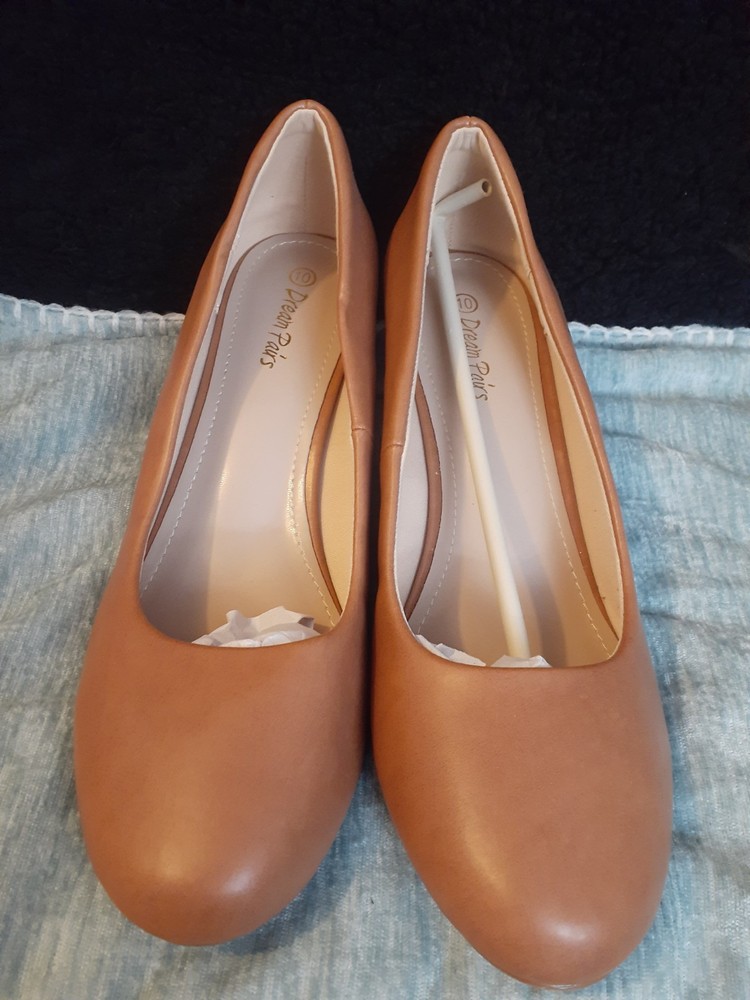 Vintage: No Customized: No Theme: Classic Type: Heel Upper Material: Faux Leather Toe Shape: Round Toe Features: Comfort Closure: Slip On US Shoe Size: 10 Color: Brown Season: Fall, Spring, Summer, Winter Heel Style: Stiletto Heel Height: in pics Department: Women Brand: Dream Pairs Pattern: Solid Style: Pump