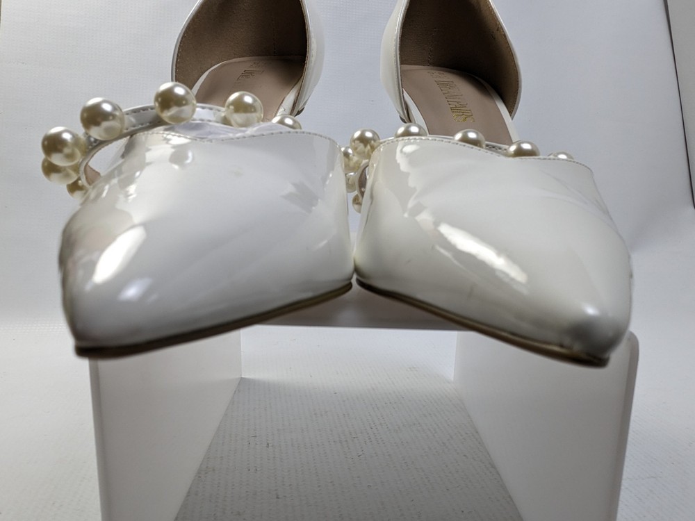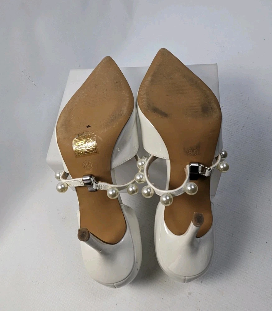 Designed with a sleek d’Orsay silhouette, glossy upper, and decorated with a lustrous pearl strap, these stiletto pearl strap pumps will give your ensembles instant glamour. Size: Women's 8.5 These shoes are in great pre-owned condition and appear to have only been worn once or twice. There are minor marks on the outer heel side of each shoe; please see pictures.