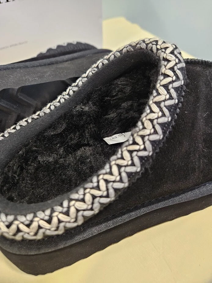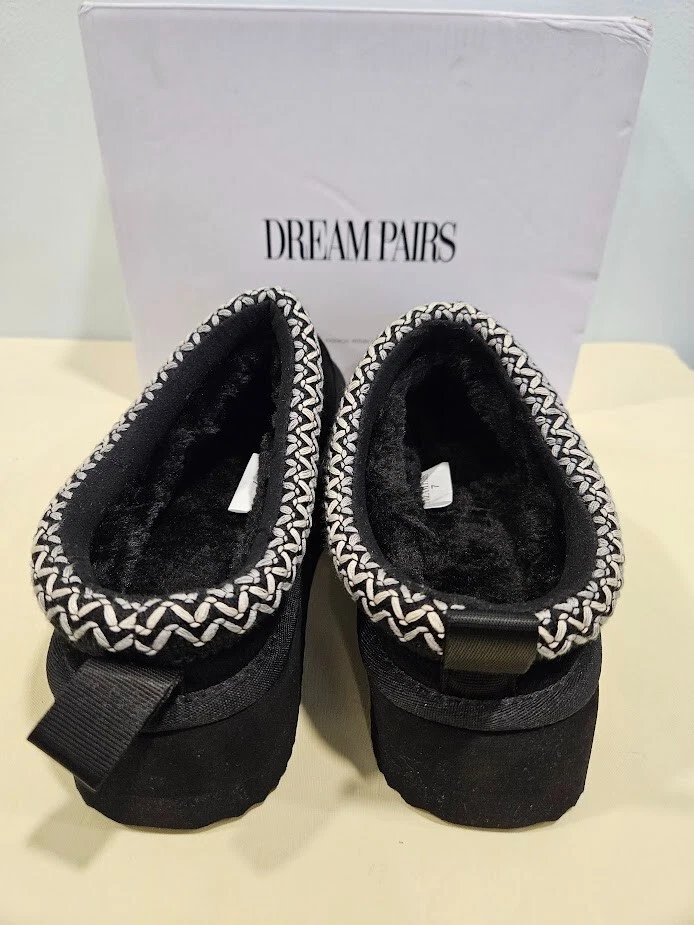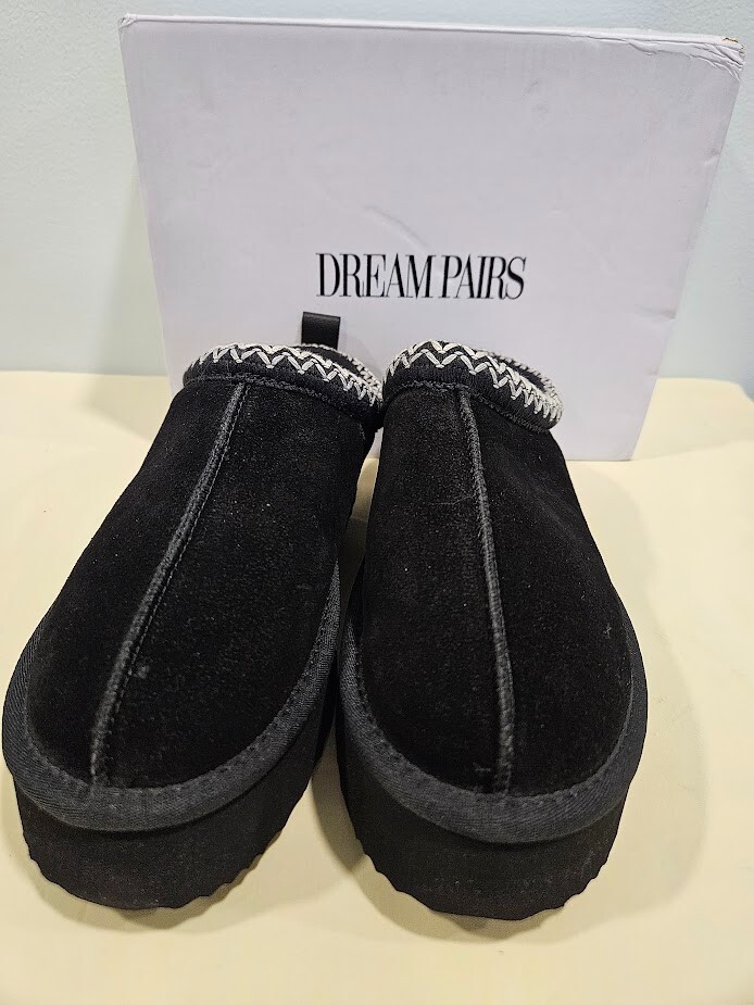 Dream Pairs Women's Black Slippers. The slip-on design with a round toe shape and low heel height of 1-1.9 inches provides comfort and convenience. Can be worn indoors and outdoors. Perfect for running errands. Made with genuine suede and faux fur lining material, these slippers are water-resistant and perfect for travel, activewear, and casual occasions. Size 7. Ships from a smoke free home! Please see all photos for exact item condition. Thank you for checking out my store! All items are shipped within 1 or 2 business days. Make a bundle to save on shipping cost.