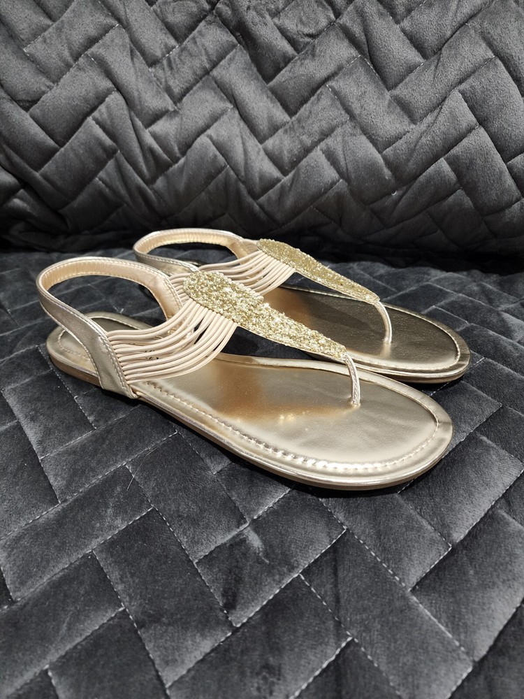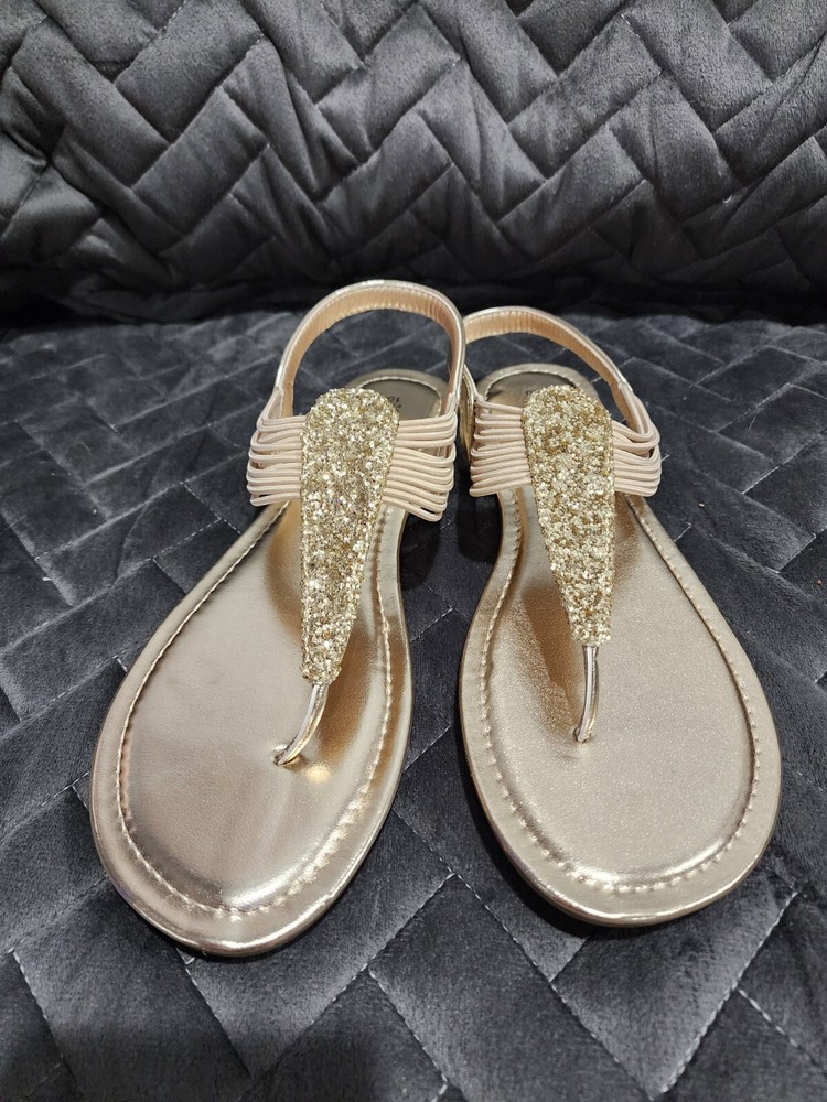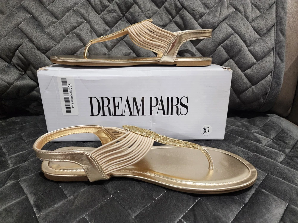 Dream Pairs Women's Gold Strappy Gladiator Thong Sandals Size 10