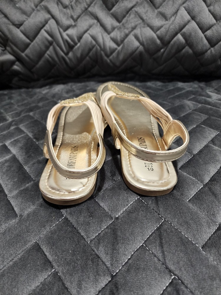 Heel Height: Flat (Under 1 in) US Shoe Size: 10 Heel Style: Flat gtin13: Does not apply Shoe Width: M Accents: Sparkly Upper Type: Sandal Character: Gladiator Style: Strappy Insole Material: Soft Latex Insole Model: Thong Features: Ankle Strap Pattern: Solid Outsole Material: Polyurethane Brand: Dream Pairs Upper Material: Synthetic Department: Women Color: Gold Closure: Pull On UPC: Does not apply Theme: Metal