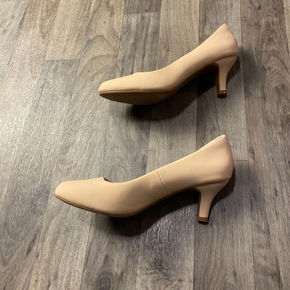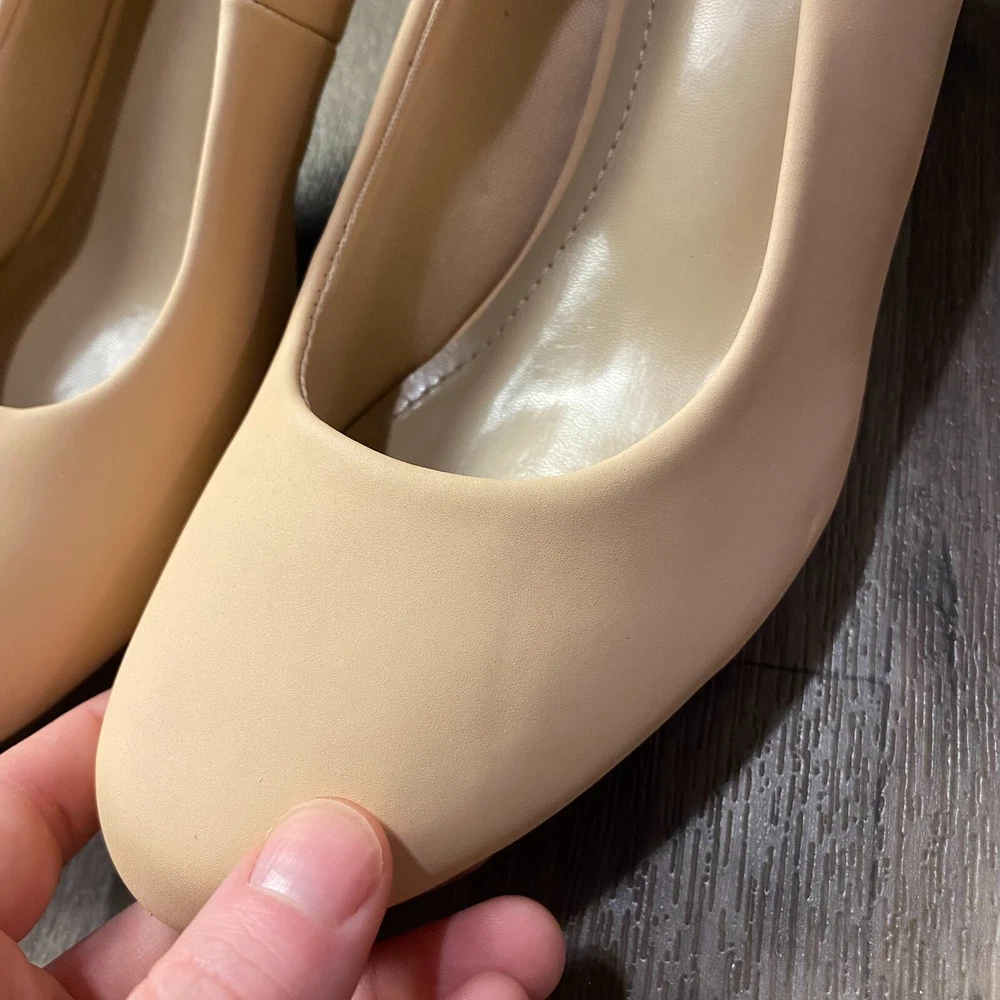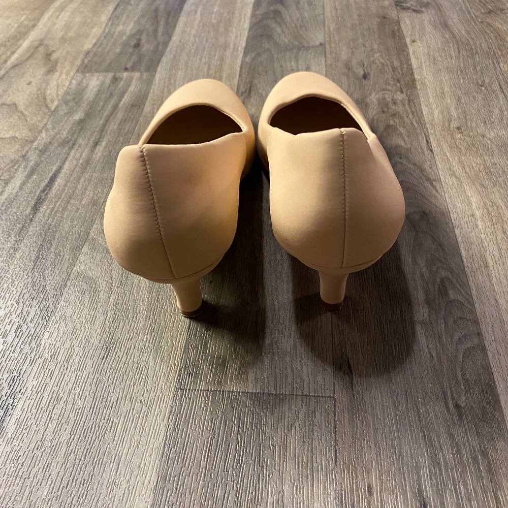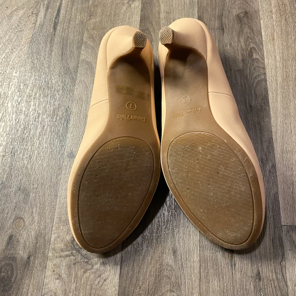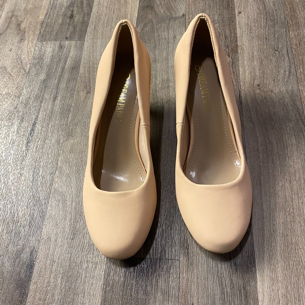 Dream Pairs Women's Shoe Size 7 Nude Heels with Round Toe Decent Condition, from a foot away they look great but if you look up close you can see some flaws like the mark in photo 7, and the dot in photo 8