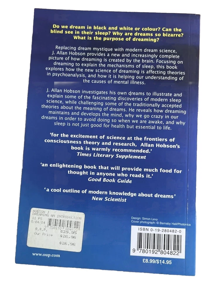 "Dreaming: An Introduction to the Science of Sleep" by J. Allan Hobson is an insightful non-fiction textbook published by Oxford University Press in 2003. This book delves into the fascinating topic of sleep science, offering a comprehensive look at the mysteries of dreaming. Written in English, this paperback is suitable for young adults and adults interested in the mind, body, and spirit genre. With a focus on the science behind our dreams, this book is a valuable addition to any reader's collection." Thank you for purchasing from A-ZCollective