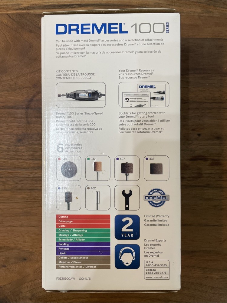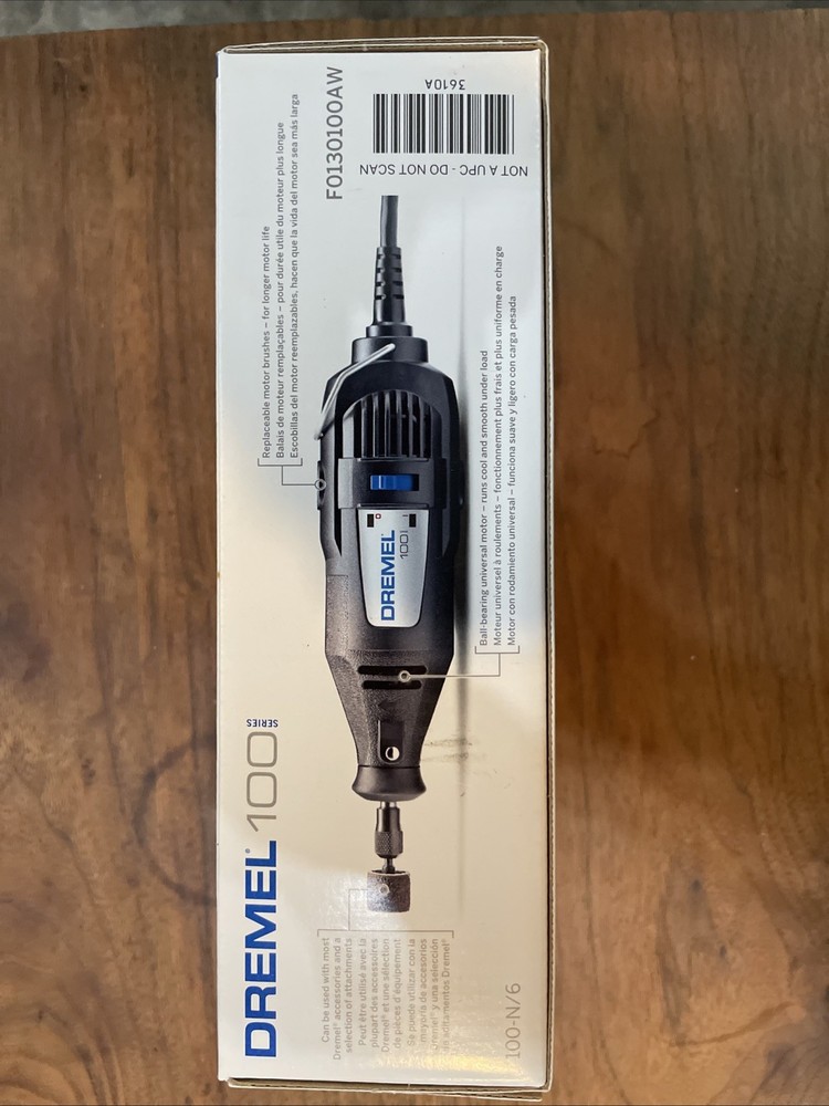 The Dremel 100 Series 100-N/6 120 Volt Single Speed Rotary Tool Kit is a powerful and versatile tool kit designed for a wide range of projects. It features a corded electric power source, a 7/8 inch chuck size, and a keyless chuck type for easy bit changes. The kit includes 7 pieces, including an attachment, and is compatible with lithium-ion batteries for added convenience. This rotary tool kit is ideal for hobbyists and professionals alike, offering precision and control for various cutting, grinding, and sanding tasks.