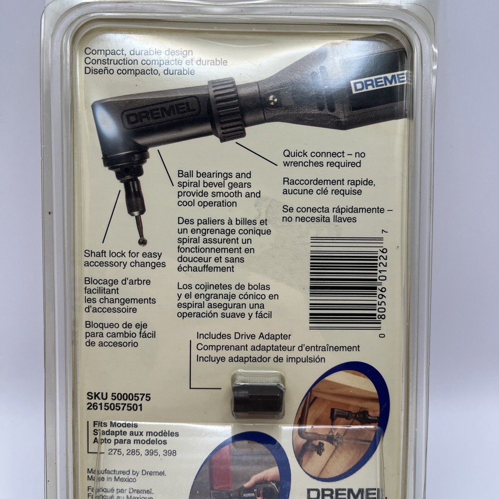 Elevate your workshop capabilities with the Dremel Genuine OEM Replacement Angle Attachment - 575. Designed specifically for compatibility with Dremel rotary tools, this attachment is an essential accessory for those who demand efficiency and precision in their projects. The sleek black finish complements the durable build, ensuring a seamless integration with your existing tool collection. This angle attachment is a single-piece, corded electric rotary tool accessory that does not include a battery, keeping your operations uninterrupted and reliable. Measuring 6 cm in length, 8.5 cm in height, and 3 cm in width, it's compact enough for detailed work while still providing the power and stability Dremel is known for. Whether for home or professional use, this attachment is a genuine Dremel replacement part that promises a boost in your Rotary Tool experience.