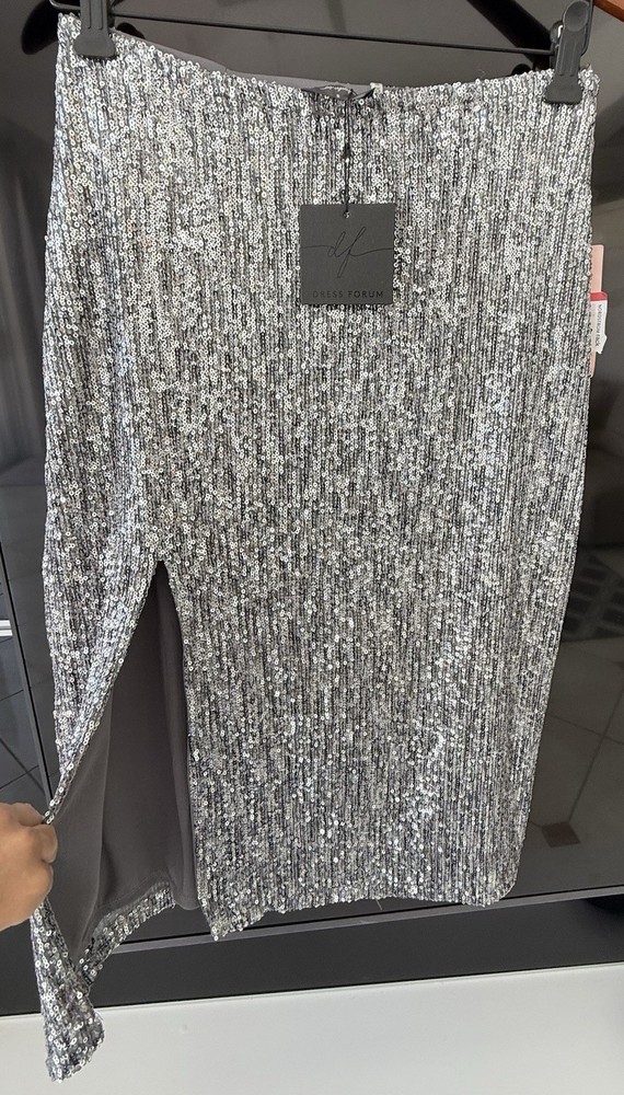 Dress Forum- Sequin Midi Skirt Silver- S Women's