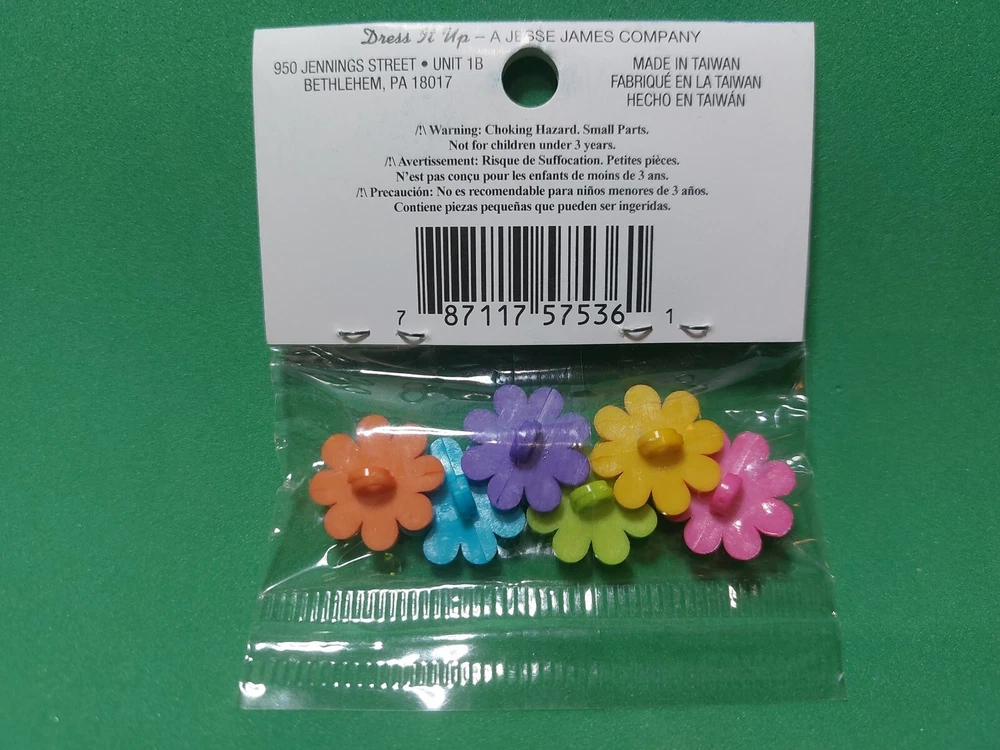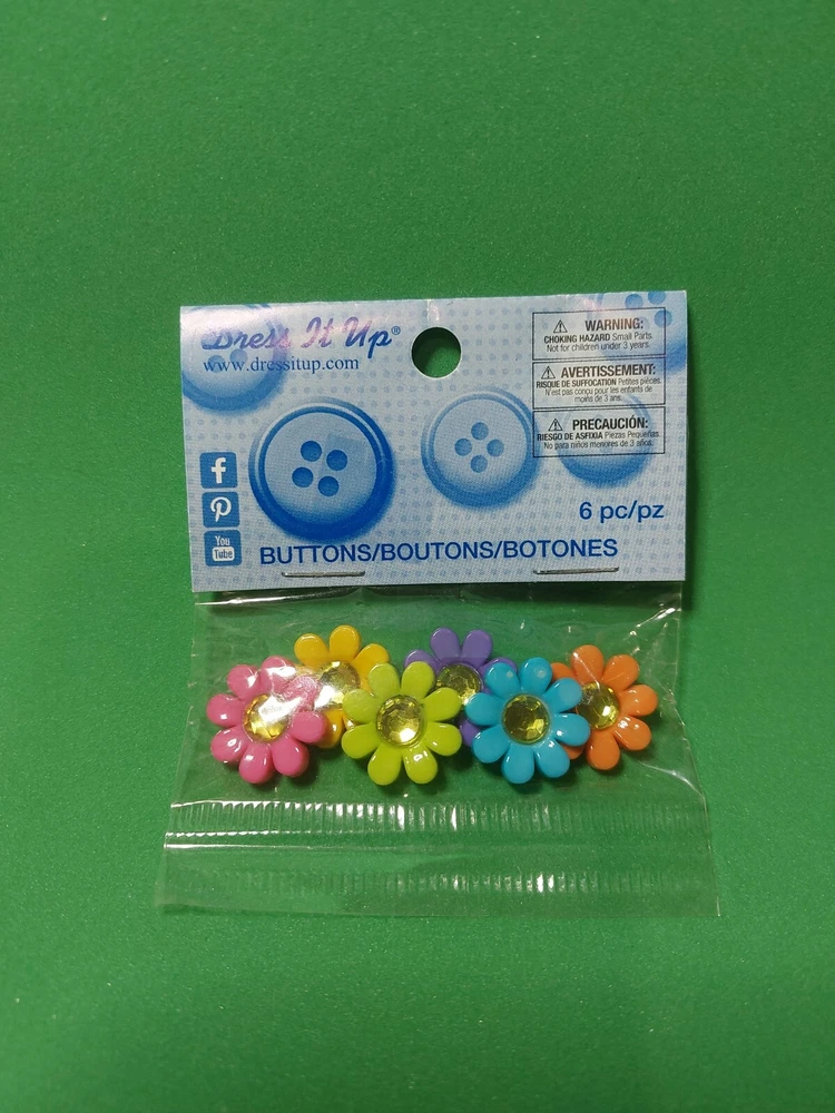 Dress It Up Craft Buttons Rhinestone Multicolored Daisy 6 pcs Brand New Sealed