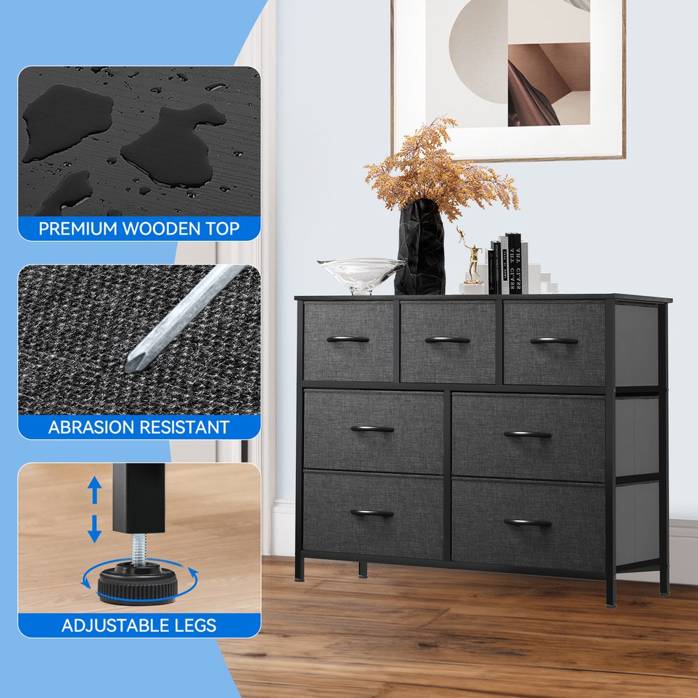 seattle-design Product Description taus784 Featured types you may look for 10 Drawer Dresser Light Gray 12 Drawer Dresser Light Gray 10 Drawer Dresser Brown 7 Drawer Dresser Brown 12 Drawer Dresser Dark Gray FREE SHIPPING 30 DAYS GUARANTEE PREMIUM QUALITY GOOD SERVICE Dresser Storage Tower 7 Drawers Bedroom Hallway Entryway Closet Chest of Drawers FEATURES Q UALITY CONSTRUCTION - Structured with a powerful metal frame and a durable MDF wooden top; Contains 7 detachable and foldable drawers with easy-to-pull wooden handles; Held up by 4 adjustable plastic legs that prevent scratches to your floor DURABLE FABRIC - The drawer's front side is constructed with premium cationic polyester fabric; The surrounding sides are covered by breathable, non-woven synthetic fabric; Allows for easy care - simply wipe clean with a damp cloth and let air dry EASY ASSEMBLY - Comes with detailed instructions and installation video for a hassle-free installation; All pieces and accessories are included in the package; Assembly only requires you to fasten a few screws VERSATILE COLOR SCHEME - Highlights a sleek, modern design combining premium black grey fabric drawers, a sturdy black metal frame, innovative crossbar design on the back, and a waterproof wooden tabletop; Perfect for living rooms, bedrooms, hallways, entryways, closets, nurseries, etc.; Fix it to a wall with screws LARGE STORAGE CAPACITY- 7-Drawer dresser conveniently organizes your clothes, scarves, socks, T-shirts, pants, sunglasses, books, small toys, etc.; Overall dimensions: 39.3" L x 11.8" W x 29.7" H; Large drawer dimensions: 18" L x 11" W x 8.4" H; Small drawer dimensions: 11.8" L x 11" W x 8.4" H Specifications: 7 Fabric Dressers Easy to Assemble Foldable Drawer Package Included: ● 7 -drawer storage chest ● Assembling hardware kits ● Instructions SHIPPING 1. The shipping rates listed are only for residential or commercial destinations in the continental 48 United States. All international sales will go through eBay Global Shipping Program.please ask us if there are any questions. 2. We only ship the item to the address that is sent to us at the time of checkout. Please verify the correct shipping address in your PayPal account before making your payment. If we ship your item to an old or invalid address and you are not able to locate the item, we are not responsible for shipping a replacement. 3. Currently, we do not ship to Hawaii, Alaska, Puerto Rico,APO/FPO/PO Boxes. 4. We use USPS & FedEx as shipping method. 5. Payments cleared before 12 PM PST, will be shipped on the same day. PAYMENT 1. We accept PayPal and all forms of credit card. 2. We will only ship to the confirmed Paypal shipping address given with the payment.responsible for shipping a replacement. 3. We do not offer local pick up service. RETURN 1. 30 days Money Back Guarantee. All of our products come with a return period of 30 days from the date of original delivery. 2. If any package that needs to be returned, please contact our customer service first to receive a RMA form. 3. All return items MUST be in brand new condition. 4. If you are not completely satisfied with your purchase or no longer need the item (if unopened) within the 30 days, we will assist you with a return for full refund minus a 20% processing fee. 5. If there is an issue of damage, please send us pictures through mail. Depending on the damage, we will take further action to solve the problem as soon as possible. 6. Please do not ship any goods to any address without our authorisation as it might lead to you not receiving your refund. [Please do not initiate a return without our authorisation as this could result in a delay in issuing your refund.] ABOUT US 1. Specialized in aftermarket auto parts since 2012, we source and work directly with professional manufacturers to provide the highest quality parts at the most economical prices. 2. We also has over 5 years of shipping experience with FedEx and USPS . Our Packing Quality is Guaranteed , Item Ship-ping is timely! Product Details Shipping 1.The shipping rates listed are only for residential or commercial destinations in the continental 48 United States. All international sales will go through eBay Global Shipping Program.please ask us if there are any questions. 2.We only ship the item to the address that is sent to us at the time of checkout. Please verify the correct shipping address in your PayPal account before making your payment. If we ship your item to an old or invalid address and you are not able to locate the item, we are not responsible for shipping a replacement. 3.Currently, we do not ship to Hawaii, Alaska, Puerto Rico,APO/FPO/PO Boxes. 4.We use USPS, UPS & FedEx as shipping method. 5.Payments cleared before 12 PM PST, will be shipped on the same day. Payment 1.We accept PayPal and all forms of credit card. 2.We will only ship to the confirmed Paypal shipping address given with the payment. 3.We do not offer local pick up service. Return 1.30 days Money Back Guarantee. 2.If any package that needs to be returned, please contact our customer service first to receive a RMA form. 3.All return items MUST be in brand new condition. About Us 1.Specialized in aftermarket auto parts since 2012, we source and work directly with professional manufacturers to provide the highest quality parts at the most economical prices. 2.We also has over 5 years of shipping experience with FedEx and USPS . Our Packing Quality is Guaranteed , Item Ship-ping is timely!