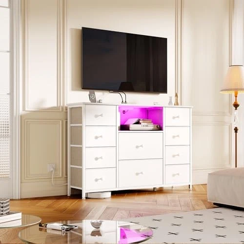 Menu 1. We require immediate payment. 2. We currently accept payment via eBay managed payments only. 3. Once payment is cleared, we will dispatch your shipment within 1-3 business days. Please refer to the "Shipping" tab for more information regarding shipping speed to your destination. Dresser for Bedroom with 10 Drawers, White Storage Organizer TV Stand for 55" TV with LED Lights and Sockets, Fabric Chest of Drawers with PU Finish for Kid Room, Entryway, Living Room, Hallway Product description Spacious Storage Space: This white dressing table comes with 10 fabric drawers, a spacious open shelf, and a wooden countertop to meet all your storage/exhibition needs. We offer two different sizes of drawers, customized for classified storage, which can hold messy toys, clothes, or blankets in the storage cabinet and keep the room clean and tidy. This TV stand is not limited to the bedroom, it seamlessly transitions to the living room, study, closet, and other areas. No matter w it is in your home, this 10 drawer dresser will help you add a touch of elegance and practicality to any environment TV Stand for up to 60" TVs: it's not just a dresser, but also a TV stand. Set this long dresser table as a beautiful TV stand for the bedroom. Its design can accommodate screens of 50 or 60 inches. Messy TV supplies and scattered DVDs can be hidden in deep drawers. Imagine setting up the LED lights on the TV stand and comfortably sitting on the sofa or bed with your family, enjoying movies. The TV stand with drawers creates a serene space for quality time and enhances the atmosp of a home theater Charging Station & LED Lights: This fabric dresser for bedroom is equipped with a built-in power socket and LED lights, placed in your home, creating a strong atmosp and making your home more fashionable and convenient. The color and brightness of the LED chests of drawers can be adjusted according to the needs of the scene. This storage organizer is equipped with a charging socket, which can easily meet your charging needs. You can easily charge your phone, TV, and other devices as needed Sturdy, Safe and Stable: Dimensions: 11.8"D x 47.2"W x 31.5"H. This drawer dresser is made of MDF & non-woven fabric with a thicken metal frame to ensure durability, and it includes an anti-tip kits to ensure stability and prevent falls. It also features a smooth PU surface for easy cleaning and maintenance. In addition, the adjustable feet adapt to a variety of floor surfaces and protect floors from scratches Easy to Assemble: No need to worry about installation issues! Assembly is fast and simple, including all necessary accessories and clear step-by-step instructions. Make it easy for you to assemble within 30 minutes. This TV stand is not only powerful in function, but also elegantly designed. The lines are simple, the appearance is modern, and it can seamlessly integrate into any home decoration, becoming a fashionable supplement to your living space PLEASE MESSAGE US IF YOU HAVE ANY OTHER QUESTIONS, AND MANY THANKS FOR READING ALL OF THIS. Copyright ©#. All Rights Reserved.