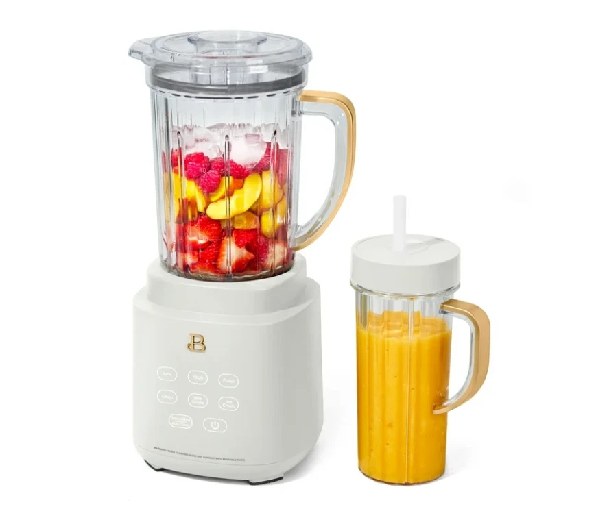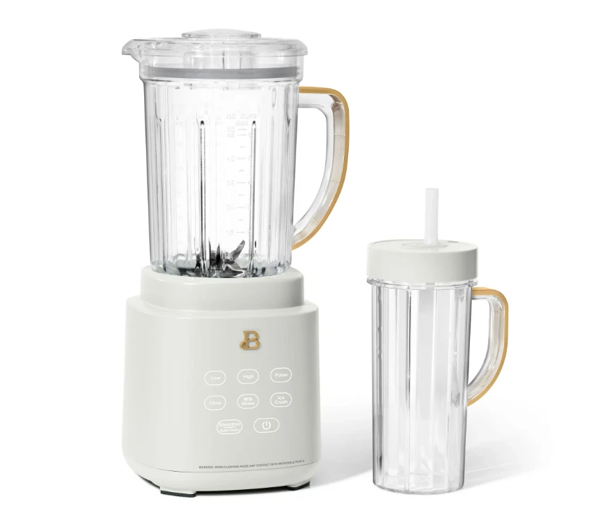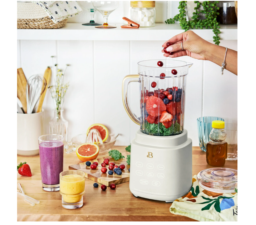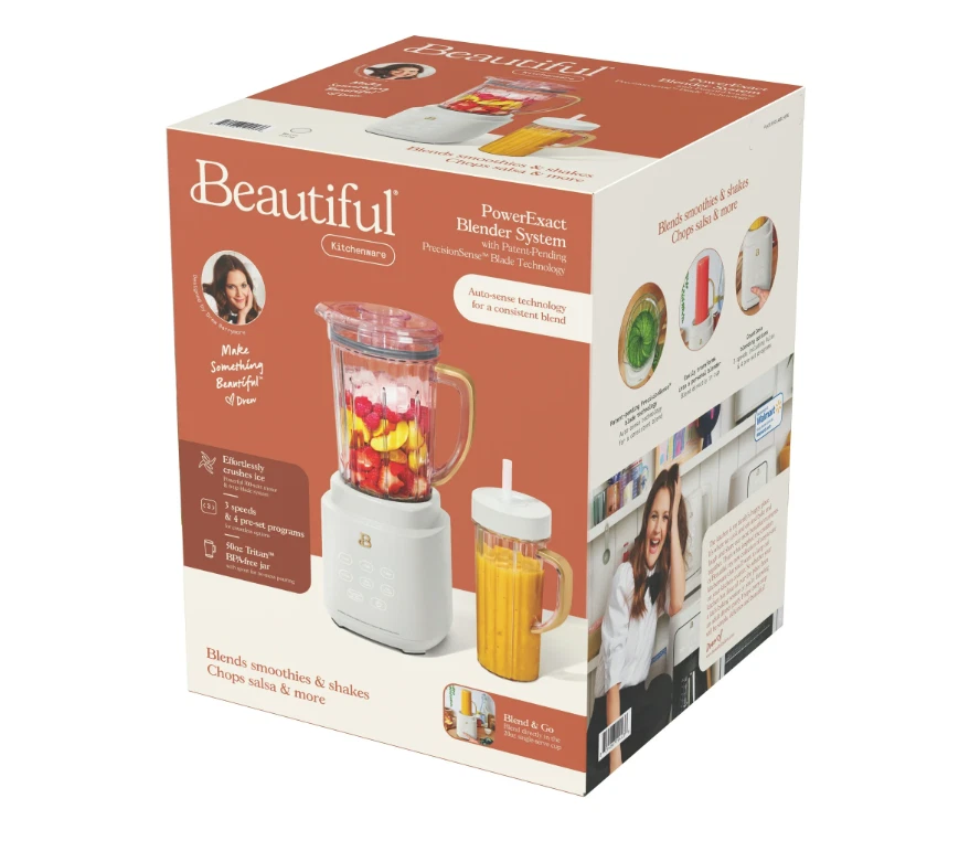 Consistent smoothies, soups, and salsas await with the Beautiful PowerExact Blender System. It features our PrecisionSense™ Technology designed to adjust blade speed and power based on the type of ingredients you’ve added. The result? A consistent blend every time. A powerful 700-watt motor crushes the toughest of ingredients with ease, and with three speeds and four pre-set functions, this blender can tackle everything from perfect purees and silky soups to frozen mocktails and freshly chopped salsas. The 50oz Tritan™ BPA-free jar is easy to clean and the lid comes with a removable 2oz measuring cup. Bonus: For on-the-go drinks, blend directly in the 20oz to-go cup, then use our patented No Drippy Sippy lid to transport your creation mess-free. Thoughtfully designed with sleek touch-activated illumination and our signature gold accents, the Beautiful Blender is perfectly suited to your kitchen and your lifestyle, complete with auto-clean functionality and removable, dishwasher-safe parts. 50.0 L. Condition: new. PrecisionSense™ Technology auto-detects ingredients to control speed and power for consistent results Powerful 700-watt motor effortlessly crushes ice and fresh or frozen fruits and vegetables Includes 3 speeds & 4 pre-sets: Low, High, Pulse & Ice Crush, Chop, Milkshake and Smoothie/Clean 50oz BPA-free, scratch-resistant Tritan™ jar with pour spout and 2oz measuring cap 20oz BPA-free single-serve cup with No Drippy Sippy™ lid Our signature touch-activated display illuminates only when you need it Durable metal-to-metal drive and 4-tip stainless steel blade tackles tough-to-blend ingredients like kale and carrots Removable blade, pitcher and single-serve cup are dishwasher safe Beautiful by Drew Barrymore available exclusively at Walmart Condition: new