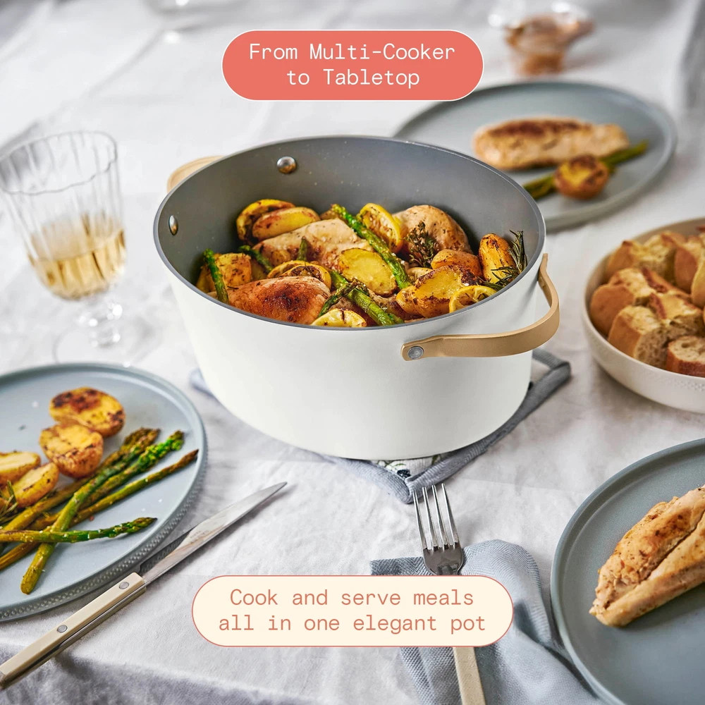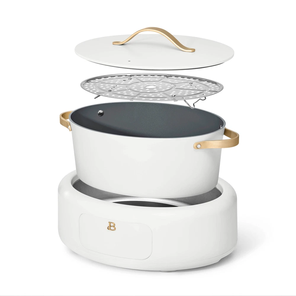 Sauté, slow cook, simmer, steam, and so much more—the Beautiful 10-in-1 6qt Electric Multi-Cooker is a marvel in the kitchen. This do-it-all countertop companion replaces 10 cooking essentials with 7 preset functions to easily whip up whatever you’re craving. Prep and cook right in the pot, then finish it off in the oven for a crisp finish—the pot and lid are oven safe up to 400°F. And did we mention it doubles as a stylish serving dish? Now that’s beautiful. Created by Drew Barrymore, Beautiful Kitchenware combines elegant design, contemporary colors and modern silhouettes for high-performance appliances that look beautiful in your kitchen. Condition: new.