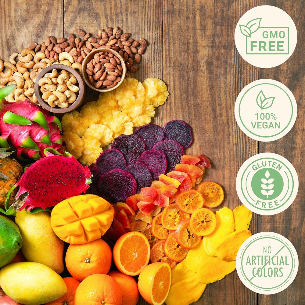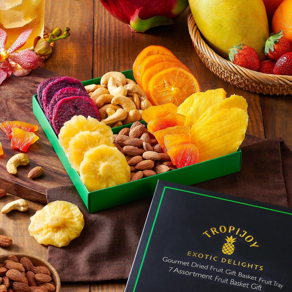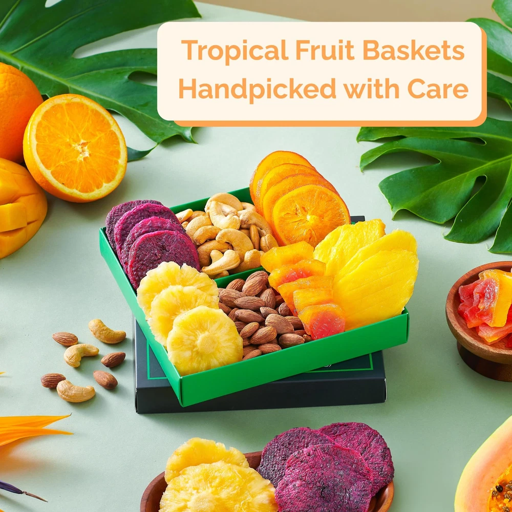 Welcome to , where every box is a passport to a world of exotic flavors. Born from the rich, fertile lands of Vietnam, is more than just a dried fruit brand—it's an invitation to explore the vibrant and diverse tastes of the tropics. Indulge in the Dried Fruit and Nut Gift Baskets, featuring exotic varieties of premium dried fruit and nuts. Perfect as thank you gifts for women, anniversary gift for couple, or get well soon gift baskets for women, this healthy and flavorful fruit basket is designed to impress. 7 TROPICAL FLAVORS – Featuring dried mango, dragon fruit, pineapple, and more, this vibrant fruit basket gift offers bold flavor and natural sweetness in every bite—perfect for anyone who loves tropical fruit baskets. MADE TO CELEBRATE – Whether it’s for hostess snacks, gift baskets for women, or grandma gifts, this beautifully arranged fruit tray makes any moment more meaningful. It’s one of our top shared dried fruit and nuts gift basket. HAND-PACKED – From buttery cashews to a colorful dragon fruit and pinapple, each dried fruit gift basket is hand-assembled with care. SWEET, WHOLESOME SNACKING – A healthy food gift basket with dried fruits and nuts, including a chewy dried fruit mix, soft mango slices, and an assortment of naturally dried fresh fruit with no artificial colors—perfect for guilt-free snacking. DELIVERED FRESH, MADE PERSONAL – Brighten their day with a dry fruits gift box. Each one ships ready to enjoy, with the option to add a personalized message at checkout.