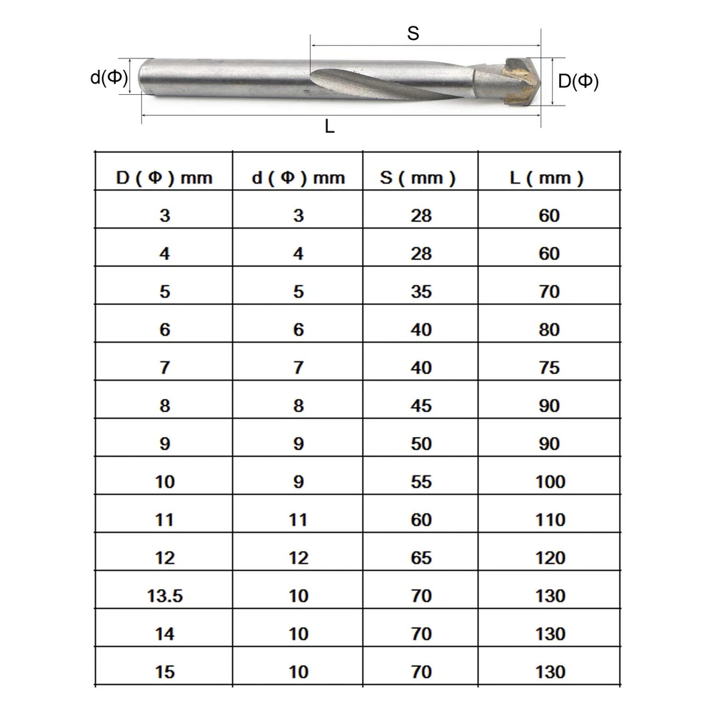 Package includes: 13 drill bits, respectively: 3/4/5/6/7/8/9/10/11/12/13.5/14/15 mm This set of drill bit loses its hardness as a cutting tool once the tip starts to heat up. Using the hss drill at lower speeds with coolant or lubricant, you can successfully drill a large number of holes in metal. (continue to add water for cooling while drilling) Our drill bits with low tungsten content are not suitable for stainless steel, aluminium alloys, coloured steel and other hard metals, but are suitable for a wide range of aluminium alloys, iron, copper, brass, wood, plastics and other metal materials for hand drills, bench drills and more Our drill bits bits are available in 13 different sizes to meet the various needs of your work, no need to buy other sizes separately, set of drill bits can meet most of your drilling needs. Carbide drill bits are mainly used for pig iron and cast iron Carbide drill bits have high toughness, abrasion resistance and hardness for high speed cutting, with a large piece of carbide at the end of the drill, allowing you to easily complete your work at high speeds