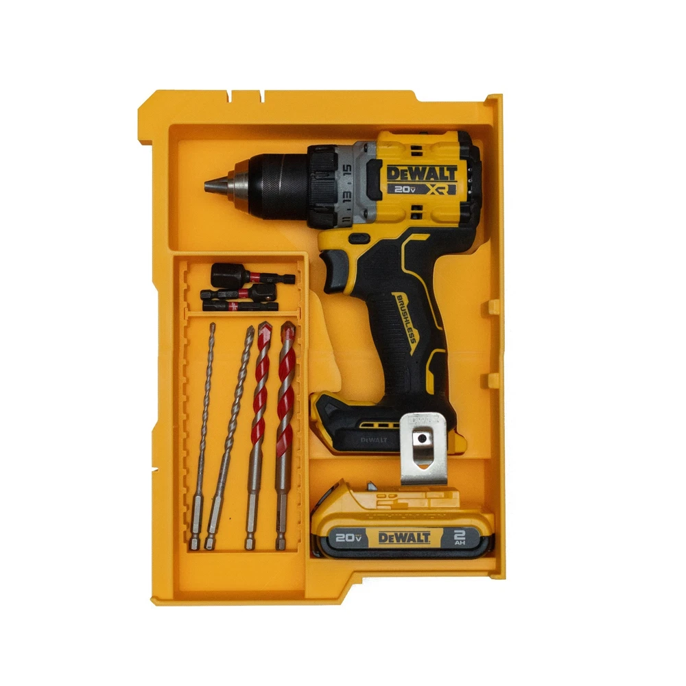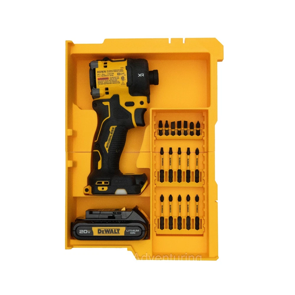 Modular insert for the DEWALT ToughSystem® 2.0 Organizer model DWST08040. The drill/driver insert is designed to fit various DEWALT drills and drivers, bits and accessories, and select 20V MAX* batteries up to 2aH. You'll no longer need to carry multiple tool cases or bags to hold all the parts you need for a job with the removable storage bins for larger bits and accessories, built-in DEWALT ToughCase®+ system storage system for sets of bit accessories, or dividers to for slimmer parts if not using the ToughCase®+ system. Includes: - One Drill/Driver Insert (Left or Right) - Two removable storage bins - Two ToughCase®+ dividers Does NOT include any tools, batteries, or bits. Tested Models: - DCD777 - DCD794 - DCD800 - DCF787 - DCF809 - DCF845 - DCF860 - DCF870 - DCF885 Does NOT fit: - DCD771 - DCD996 - DCK240C2