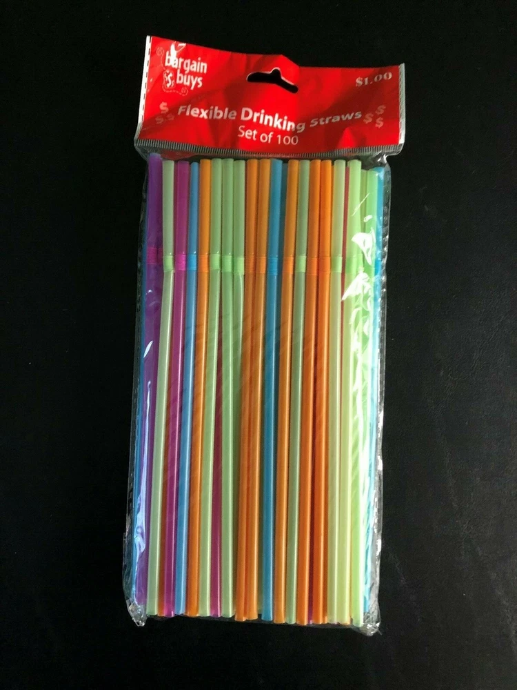 Drinking Straw Assortment 2 packs of 25 milkshake straws (50). 2 packs of 10 paper straws (20). 2 packs of 6 star straws (12). 1 pack of 100 flexible drinking straws