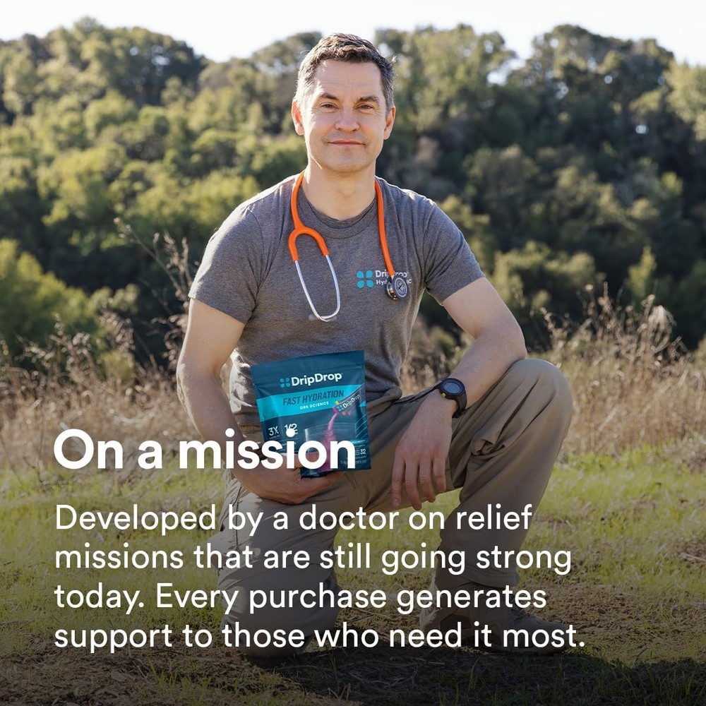 DripDrop Hydration Packets - Grape - Single Serve Electrolytes 32 Count Description Features: FAST & EFFECTIVE HYDRATION: Combat dehydration with our science-based electrolyte powder formula that hydrates faster than water alone. Perfect for sports, outdoor activities, and hot days. 3X ELECTROLYTES & ½ THE SUGAR: Our precise formula activates a hydration shortcut, delivering essential electrolytes with less sugar than leading sports drinks. A great-tasting hydration powder that's easy to drink and mix. HEALTH-CONSCIOUS FORMULA: Non-GMO, Gluten-Free, Vegan, Soy-Free, Dairy-Free and Kosher. Our hydration packets include essential nutrients like potassium, magnesium, zinc, and vitamin C for added immune support. Natural colors derived from sources including fruit and vegetable juices, turmeric, spirulina extract, and beta carotene. No FD&C colors ever (no Red 40). CONVENIENT SINGLE-SERVE PACKETS: 32 portable Grape flavored electrolytes powder packets perfect to rehydrate on-the-go. Ideal for travel, sports activities, and daily use. Mix 1 packet into 8 oz of water for effective hydration. TRUSTED BRAND WITH A MISSION: Created by a doctor, DripDrop is a groundbreaking innovation that earned a Mayo Clinic Humanitarian Award. As a Public Benefit Company, every purchase supports our mission to defeat dehydration with global donations of our product. DELICIOUS FLAVOR: Awarded Men's Journal Fitness Award for the Best-Tasting Hydration Drink. Explore our many flavors and find your favorite electrolyte drink! Product Details: Product Dimensions : 8.25 x 2 x 8 inches; 11.29 ounces Manufacturer : DRIPDROP Brand: DripDrop Flavor: Grape Primary Supplement Type: Electrolyte Unit Count: 32 Count Item Form: Powder Item Weight: 11.29 Ounces Item dimensions L x W x H: 8.25 x 2 x 8 inches Diet Type: Gluten Free, Kosher, Vegan Product Benefits: Hydrating Age Range (Description): Adult Handling We will ship all orders within 1 business day of payment. Delivery We Do Not Ship Outside of the Continental US. Return Policy All items qualify for returns within 30 days of receipt. Buyer is responsible for return shipping on any item that is not damaged. Feedback We take our reputation seriously, we buy and sell online, so we understand the value of trust. If you are unsatisfied with your order, please contact us and we will work with you to resolve it to your satisfaction.