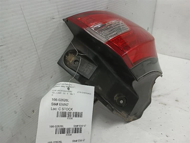 Inventory ID: 11253582 Designation: Used VIN #: 1C4PJMCS7GW225362 GTIN: Does not apply Donor VIN: 1C4PJMCS7GW225362 Interchange Part Number: 166-02626L Brand: Jeep Placement on Vehicle: Left, Rear Make: JEEP Type: Tail Light Assembly Placement: Driver/Left Year: 2016 Conditions & Options: B Manufacturer Part Number: Does Not Apply Model: CHEROKEE Mileage: 126000 PartOut ID: A-57199963 Stock #: EWN7 Genuine OEM: Yes PartNumber: 166