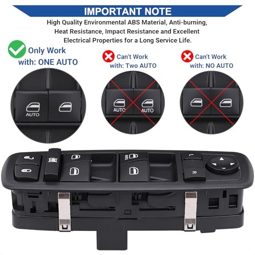 Menu 1. We require immediate payment. 2. We currently accept payment via eBay managed payments only. 3. Once payment is cleared, we will dispatch your shipment within 1-3 business days. Please refer to the "Shipping" tab for more information regarding shipping speed to your destination. Master Window Switch Power Control Button Front Left Driver Side Compatible with 2017 2018 2019 Dodge Journey Replacement OEM 68307001AA 1 Auto Button Blue Light Product description ?【Compatibility】This automotive main window switch compatible with 2017 2018 2019 Dodge Journey. ?【Replace Part】This master window control replace Dodge front left driver side door lock window switch OEM Part No 68307001AA. ?【Package Content】1 x electronic window controller + 1 x switch removal tool. ?【Important】Without an exact match of +1 "AUTO" + 14+6 pins, this switch will not be compatible with your vehicle. Check your original switch thoroughly to ensure you are ordering the correct switch. ?【Purchase Without Worry】 If the power window switch has any problems, simply contact us for giving you a satisfactory solution. PLEASE MESSAGE US IF YOU HAVE ANY OTHER QUESTIONS, AND MANY THANKS FOR READING ALL OF THIS. Copyright ©#. All Rights Reserved.