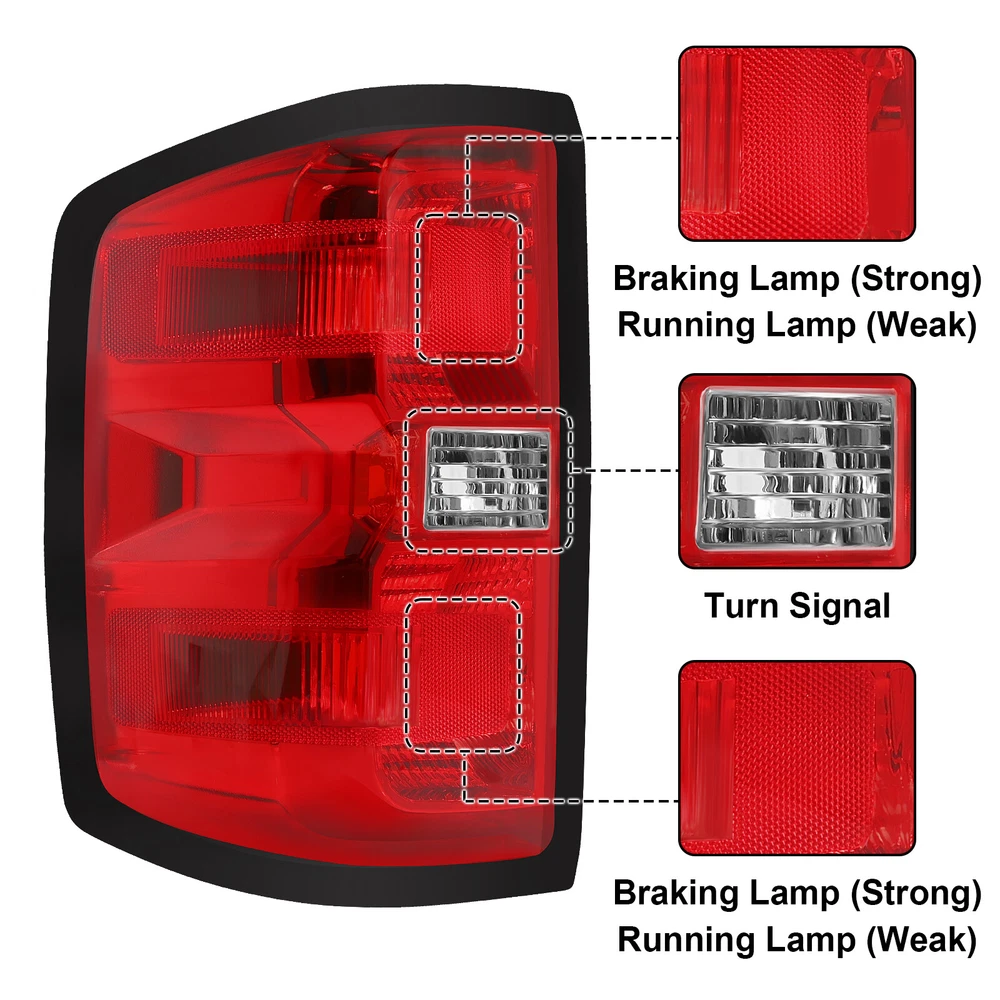 Driver Side Rear Tail Light Brake Lamp For Chevy Silverado GMC Sierra 2014-2018 Specification & Features: Condition: 100% Brand New Lens Color: Red Housing Color: Chrome Material: Plastic Placement on vehicle: Rear, Left We use excellent raw materials to produce products with OEM quality Fitment: For Chevy Silverado 1500 2014-2018 For Chevy Silverado 2500 HD 2015-2018 For Chevy Silverado 3500 HD 2015-2018 For GMC Sierra 3500 HD 2015-2018 Compatible on GMC Sierra 3500 HD Dually Models Only Not Compatible on Models w/Factory LED Tail Lights Package Includes: 1 X Tail Light (Driver Side) Contact us: Any Questions, Just feel free to contact us on eBay. We will reply you in 24 hours. Payment Shiping Policy Returns Policy Feedback Contact us Payment We accept PayPal, Google Pay, Credit Cards, and Debit Cards. Shiping Policy All Orders Will Ship Within Two Business Days.Except PR,HI,AK,GU and PO Box addresses. No local pick up All Packages Will Be Inspect Before Shipping, We Will Provide All Packing Material Needed For Your Package For Shipping Such As Boxes, Cushioning And Tape To Improve Shipping Quality. Very Important: Double check shipping address. We are not responsible for incorrect or undeliverable addresses. Returns Policy 60 Days returns satisfaction guarantee. All of Our Items Are 100% Brand New. If The Item Shows Up Defective or Broken, Please Contact Us Within 3 Business Days By Using "Ask A Question" Link Located At The Bottom of Our Listing. Your Questions/Concerns Will Be Responded Within 12 Hours Monday To Friday. Buyers May Contact us On The Weekends or Pubic Holidays And We Will Respond On The Next Working Day. We Will Offer Replacements, Exchange or Full Refund. 100% Satisfaction Guaranteed. We Will File Damage Or Lost Claim For Our Buyers Feedback We will leave a positive feeback immediately after payment is received. We appreciate a positive feedback as much as you do. If you have any issue with order,pls. contact us before leaving a feedback. We will glad to resolve your issue.Your satisfaction is our priority. Contact us If you have any concerns, Pls. feel free to contact us at any time.