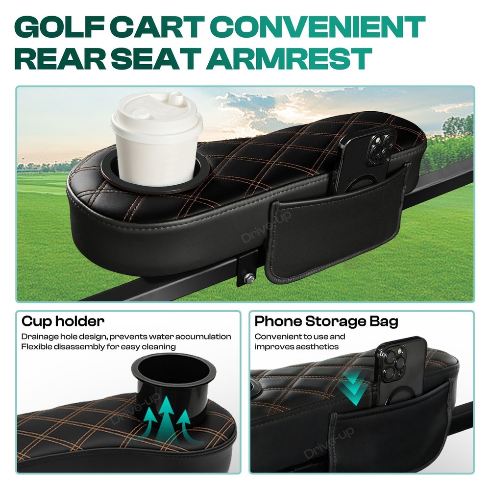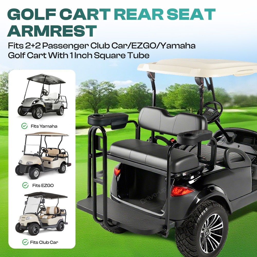 Drive-up Golf Cart Universal Black Rear Seat Arm Rest Fits Club Car EZGO YAMAHA