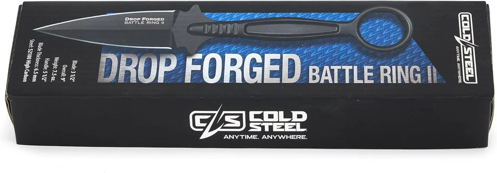 UNMATCHED DURABILITY - The Cold Steel Drop Forged Battle Ring 2 is crafted from durable 52100 High-Carbon steel, making it incredibly tough and built to last; With dual razor edges and a needle-sharp tip, this knife is ideal for rugged outdoor tasks SECURE HOLD - Designed with flexibility in mind, the Battle Ring 2 features a precisely contoured grip that fits nearly any hand comfortably, allowing for up to eight distinct grip styles; Finger ring and integral guard offer a secure hold for control PRECISION BLADE - This reliable knife with a compact 3.5" blade is ideal for outdoor exlorers & hunters; Its high-carbon steel construction delivers exceptional strength, while the sharp point and dual-edge design ensure long-lasting sharpness SECURE-EX SHEATH - The Battle Ring 2 comes with a cut-resistant, Secure-Ex sheath that features a state of the art Ulti-Clip, making it a steadfast companion you don't want to be without; The sheath offers several knife carry options from neck to belt SPECS - Weight: 7.5oz; Blade Thickness: 6.5mm; Blade Length: 3-1/2"; Blade Steel: Drop Forged 52100 High Carbon; Handle: 5-1/2"; Overall Length: 9"; Knife Type: Fixed Blade; Length Range: 5+ in; Steel Family: High Carbon Steels; Blade Shape: Spear Point COLD STEEL DROP FORGED BATTLE RING 2 KNIFE (CS-36MF): The Cold Steel Drop Forged Battle Ring 2 is crafted from a single piece of drop-forged 52100 High Carbon steel, ensuring unmatched durability and strength in any situation. This unique fixed blade knife features twin razor-sharp edges, a needle-like point, and an integral guard for superior control and precision. The contoured grip is designed to accommodate nearly any hand, allowing for up to eight versatile grip styles and ensuring a secure, non-slip hold. Equipped with a finger ring, it's quick and easy to draw when you need it most. Compact yet powerful, with a 3-1/2" blade length, this knife is perfect for outdoor tasks, hunting, and self-defense. With an edge that's built to endure, the Drop Forged Battle Ring 2 combines strength, precision, and long-lasting use. SPECS: - Weight: 7.5oz; - Blade Thickness: 6.5mm; - Blade Length: 3-1/2"; - Blade Steel: Drop Forged 52100 High Carbon; - Handle Length: 5-1/2"; - Overall Length: 9"; - Additional Features: Secure-Ex Sheath; - Knife Type: Fixed Blade; - Length Range: 5+ in; - Steel Family: High Carbon Steels; - Blade Shape: Spear Point.