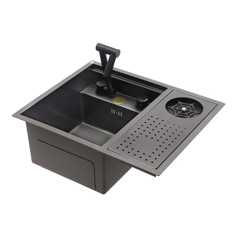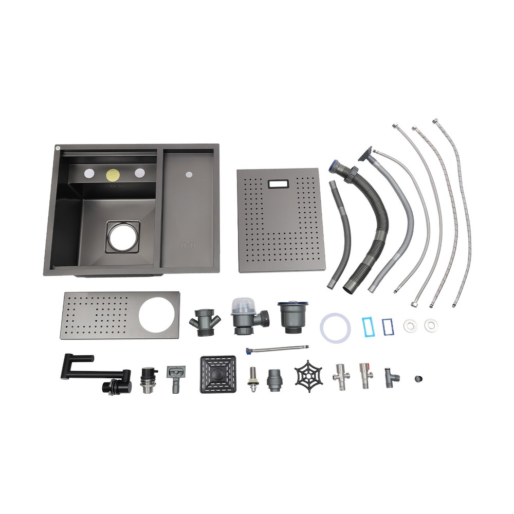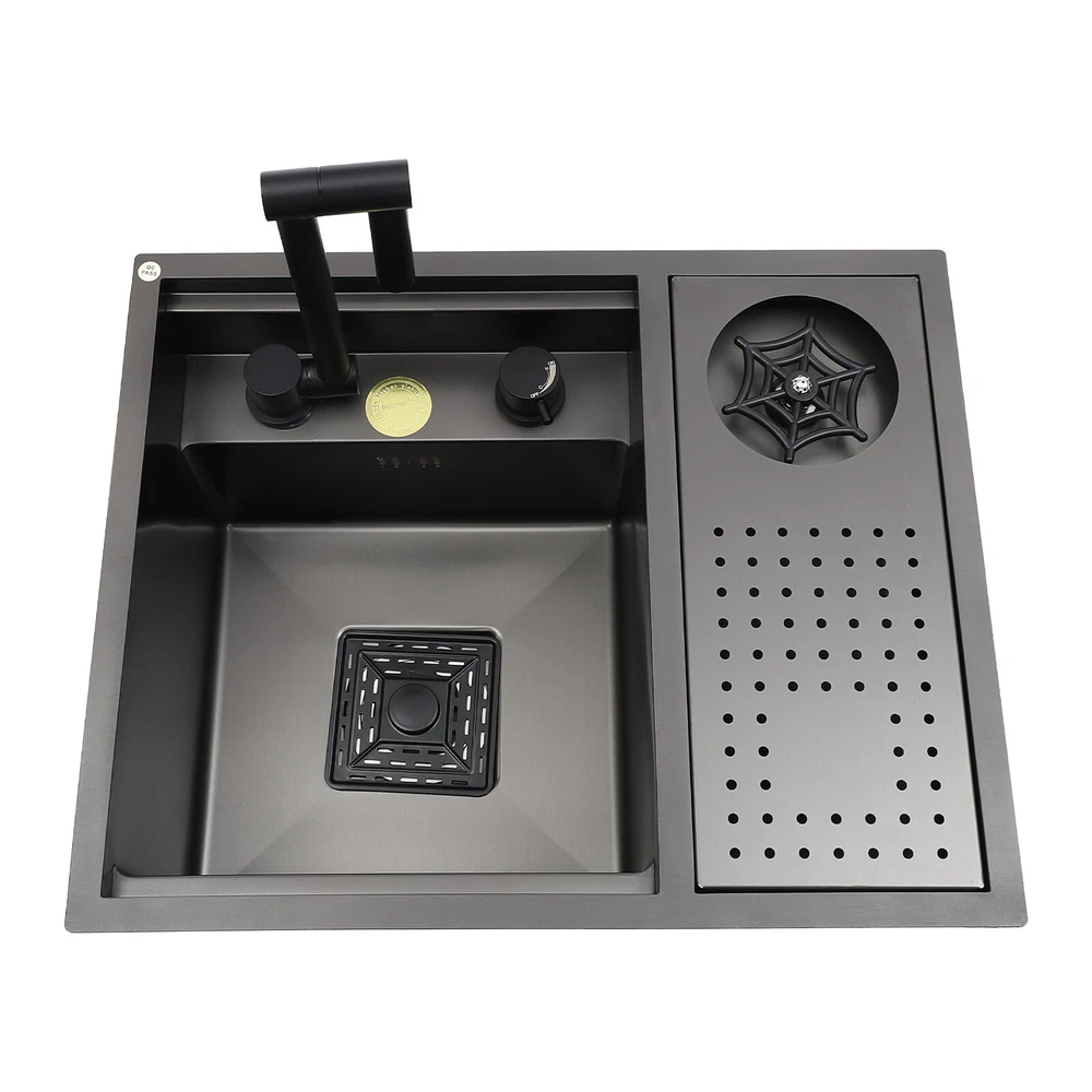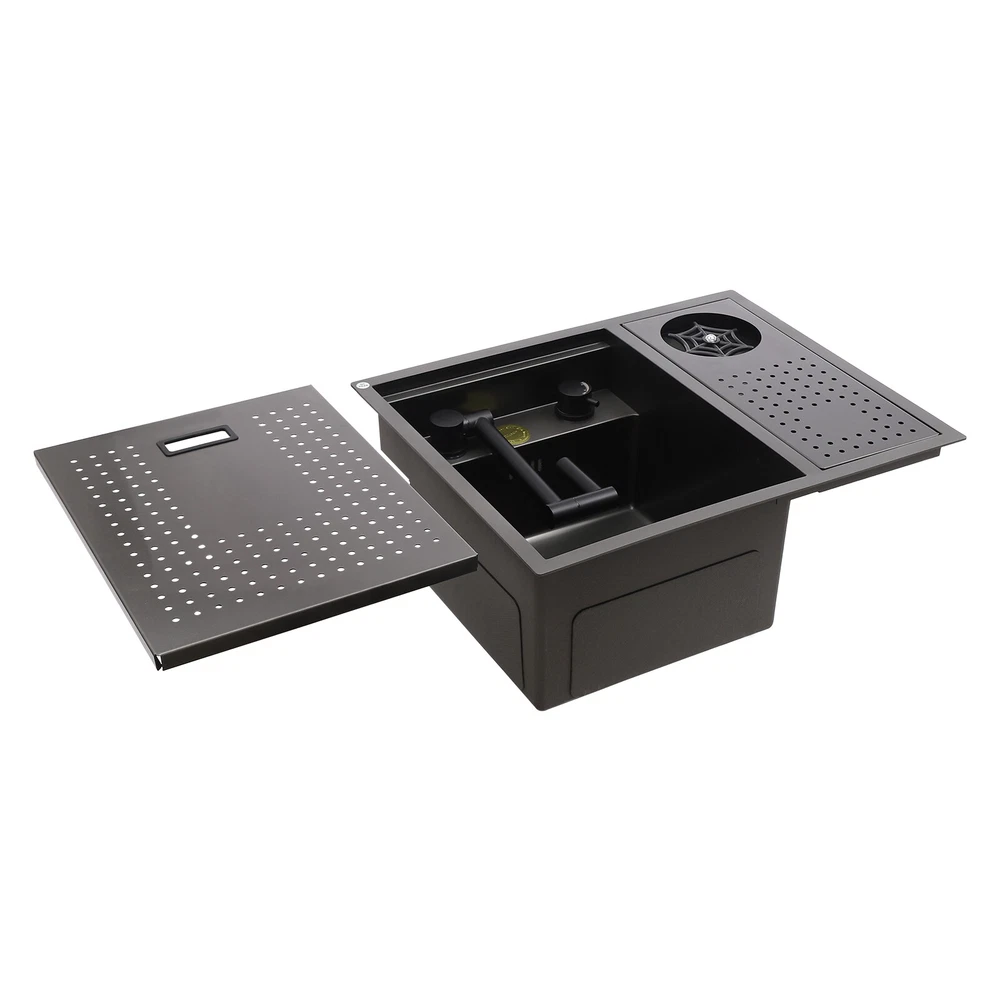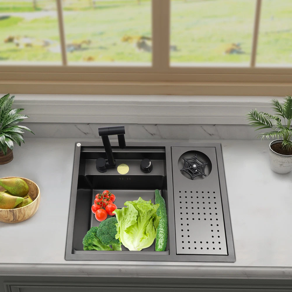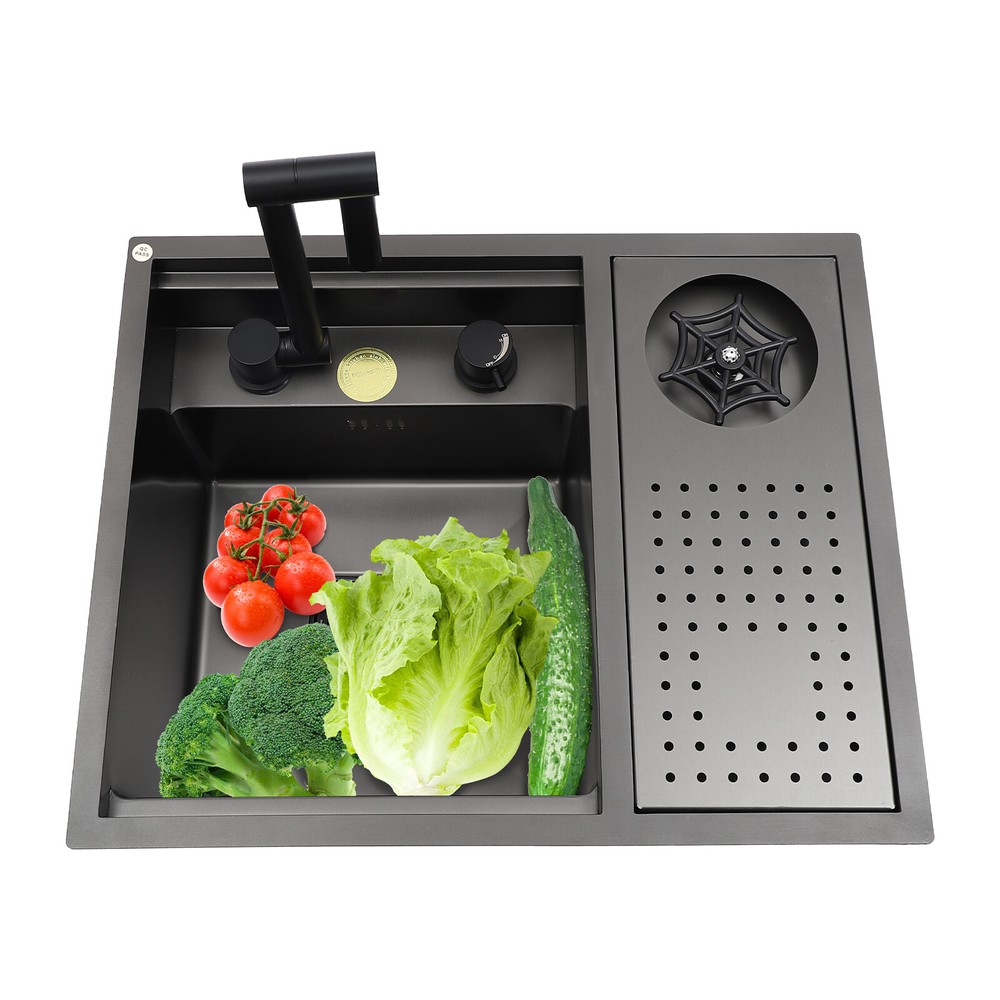 Drop In Sink Single Bowl Stainless Steel Top Mount Kitchen Bar Sink w/Faucet Welcom to ristarstore! Specification Material: Nano-stainless steel Color: Black Process: Spray Finishing Shape: Rectangular Style: Modern Assembly Required: Yes Mounting Type: Under-counter, Center, Countertop Sink Depth: 220mm/8.66in Product Size: 54.86*44.96*22.1cm/21.6*17.7*8.7in Package Size: 60*50*26.5cm/23.62*19.69*10.43in Gross Weight: 8.6kg/18.96lbs Net Weight: 7.3kg/16.09lbs Package Included 1* Bar Sink 1* Faucet Other Accessories for Assembly Description Our stainless steel sink is a bar sink solution that combines modern design with practical functionality. Designed for home bars, small entertainment spaces, or professional bartending venues, it cleverly hides the sink under the bar, making it virtually invisible when not in use, which saves space and instantly enhances the cleanliness and premium feel of the space. Key Features Made to Last: High-quality nano stainless steel and exquisite black coating make this product bright, dirt and oil-resistant, wear-resistant, and not easy to rust and deform, ensuring a long service life. Advanced Technology: The sound damping pads and acoustic insulation materials reduce noise and ensure excellent noise reduction and quiet reliability.The thick undercoating also can prevent condensation. Convenient Cleaning: The 360° rotatable faucet and 90° foldable handles provide a full range of cleaning for your items, allowing you to enjoy a comfortable and easy cleaning experience. Large Sink Space: Large 8.66-inch deepening capacity can accommodate more pots and pans while preventing splashing. It can meet the large bar, family, and other multi-scenario uses. Innovative Design: When not in use, you can close the cover to make it a kitchen workbench, allowing you to do chopping, kneading, etc. on it, providing you with great convenience. In addition, you can also reverse the cover to turn it into a draining basin in a second! Quick Draining: The X-shaped inverted flow design gives the sink a good drainage function, which can effectively prevent water from accumulating. In addition, it makes the surface less likely to adhere to stains, making it easy for you to clean. The filter basket can keep large solid residues inside the sink and protect the pipe from blocking. Installation Options Available: The product has three installation options: under-counter basin installation, center basin installation, and countertop basin installation, you can choose according to your own preferences or the specifics of the space. Hot & Cold Water Adjustment: The configured hot and cold water adjustment valve provides great convenience for you to regulate the water temperature. Simple Installation: Simple construction and a full range of installation accessories ensure that you can install the sink quickly and accurately to meet your needs in a short period. Effortless Cleaning: The smooth surface, round corners, and simple structure allow you to clean it easily without leaving dead corners of dirt accumulation. Details Push Cup Washer: It only requires you to press with one hand to dispense water for a quick cup rinse. Anti-overflow Hole: This design can effectively prevent the water from overflowing when you don't turn off the faucet in time. Application This product is suitable for kitchen sinks, center island counter sinks, bar sinks, flat sinks, wine counter sinks, etc. How to Install Place the sink in the installation position, turn it over, and place it on the floor. Press down on the sink and trace the outline along the edge of the sink. Remove the sink and draw a cut line 0.39 inch inside the outline of the sink. Drill a hole with a diameter of 14.96 inches inside the cutting line, put in the saw blade, and cut along the cutting line, then use sandpaper(not included) to smooth the cut. Fill the outside of the incision with clear silicone(some installers use glass glue)(not included), width 0.13-2.52in. After installing the kitchen faucet, put the sink close to the front edge and ease it down. Check the position of the sink on the countertop again, apply glass adhesive(not included) or install the fastener at the connecting strip, and clean the countertop. Notes Please check the size carefully before ordering. Please note that if you carry out the under-counter basin installation, you need to take the cover and sink together to the qualified installation person, in order to open and install the holes together against each other, to avoid the situation that the cover can not be covered. Please do not clean it with hard tools like steel wire balls for a longer service life. Please allow the slight color difference caused by the shooting light and 1-3cm error due to manual measurement, and make sure you do not mind before ordering. DESCRIPTION 6109 ☆ Payment Delivery details Terms of sales About us Contact us Payment We accept ebay payment 。 Fees such as import duties, taxes are not included in the item price or shipping costs. These charges are the buyer's responsibility. Delivery details Shipping: 2-9 working days to: USA Terms of sales We maintain high standards of excellence and strive for hundred percent customer satisfaction. Feedback is very important to us. We hope that you contact us immediately before you give neutral or negative feedback, so that we can address your concerns. It is impossible to address issues if we do not know about them! About us Your satis faction is our ultimate goal. We work hard to earn your trust and future business. Our certified technicians have tested each item before shipping. The unit comes with 1 year limited warranty on all manufacturing defects. a) If you receive a defective item, you may return it or ask for a discount. Please contact us within 14 days after you receive the package. b) What you returned must be intact and in its original packaging as re? u. Customer is responsible for shipping costs of the returned item. c) We will c