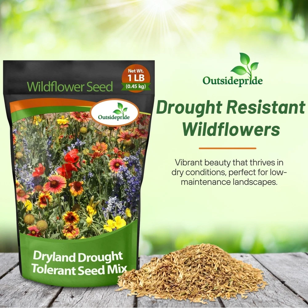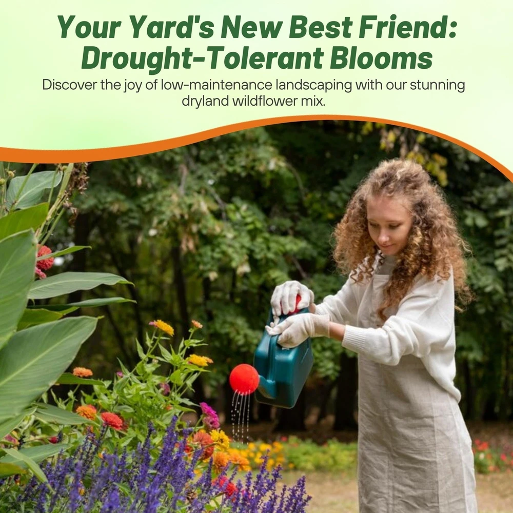 This dry land wild flower mix is made up of 50% annuals and 50% biennials/perennials to give color the first season and for seasons to come. The species in this mix were chosen for their ability to tolerate drought. These flowers will thrive in dry climates where there might not be regular moisture or irrigation. Under normal conditions, the height of these wild flowers will by 36 – 48 inches. The species in this mix include: Annual Baby’s Breath, Siberian Wallflower, Blue Flax, California Poppy, Cornflower, Perennial Gaillardia, Sweet William, Shasta Daisy, Annual Gaillardia, Corn Poppy, Rocky Mountain Penstemon, Prairie Coneflower, African Daisy, Spurred Snapdragon, African Stick Daisy, Hoary Vervain, Catchfly, Gloriosa Daisy, Black-eyed Susan, Sweet Alyssum and Plains Coreopsis. Prepare a site by removing weeds and loosening soil. Seed can be broadcast and raked into the soil, covering 2 – 3 times their thickness, or seed can be drilled to a maximum of ¼ inch. This dry land mix should be planted in the spring once soil temperature warm to 55F. Seed should stay moist by either rainfall or irrigation until germination occurs. DIVERSE MIX FOR SEASON-LONG COLOR: This wildflower seed mix contains 50% annuals and 50% biennials/perennials, ensuring continuous blooms throughout the first season and lasting beauty in subsequent years. Each wild flower species are specifically selected for their ability to thrive in arid regions, providing vibrant color displays even in challenging environments. THRIVES IN DRY, ARID CONDITIONS: Formulated for USDA Zones 3-10, this wildflower mix is perfect for areas with low moisture or irregular irrigation. The selected species grow 36 to 48 inches tall and vibrant, even in harsh, dry conditions, making it ideal for gardens, meadows, and landscapes where water conservation is essential. EASY TO PLANT AND MANAGE: These drought tolerant wildflower seeds are simple to establish, whether broadcasting or drilling. Plant at a depth of ¼ inch in the spring when soil temperatures reach 55°F. Keep the soil moist until germination to achieve optimal results. It’s suitable for both full sun and shaded areas, making it versatile for various landscape settings. FLEXIBLE SEEDING OPTIONS FOR CUSTOM COVERAGE: This bulk wildflower seeds offer a flexible seeding rate based on your desired look—use a lower rate for a scattered, natural meadow appearance or a higher rate for a dense, vibrant stand of wildflowers. It’s ideal for both large-scale and small-scale planting projects. ENHANCES BIODIVERSITY BY ATTRACTING POLLINATORS: These wild flowers not only provides a stunning visual display but also attracts a variety of pollinators, including bees, butterflies, and birds. Planting this wild flower seeds in bulk supports local wildlife and promotes a healthy ecosystem in your garden or landscape.