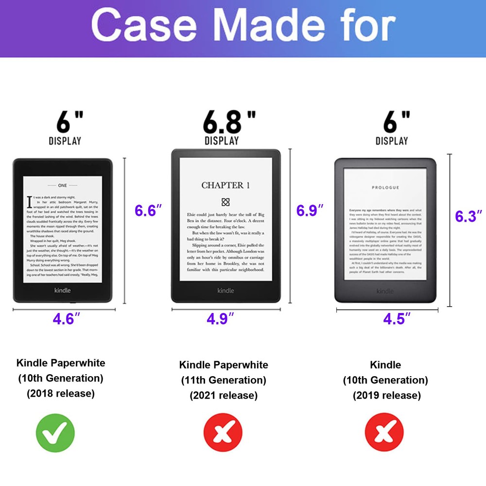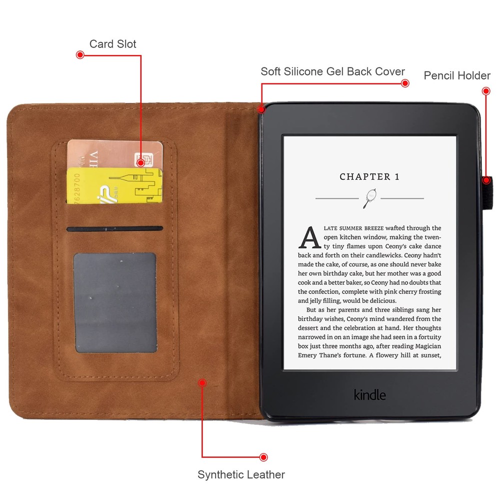 Dteck Folio Case for Kindle Paperwhite (10th Generation), 6" display, 2018 release, Serial number starts with G000PP, G000T1, G000T2, G000T3, G000T6, G00102, G00103, G0016Q, G0016R, G0016S, G0016T, G0016U, G0016V, G8S0PP, G8S0T6, G8S16Q, G8S16T, G8S16V; for Kindle Paperwhite (7th Generation), 6" display, 2015 release, Serial number starts with G090G1, G090G2, G090G4, G090G5, G090G6, G090G7, G090KB, G090KC, G090KE, G090KF, G090LK, G090LL; for Kindle Paperwhite (6th Generation), 6" display, 2013 release, Serial number starts with 9017, 905A, 905F, 9060, 9061, 9062, 90D4, 90D5, 90D6, 90D7, 90D8, 90F2, B017, B05A, B05F, B060, B061, B062, B0D4, B0D5, B0D6, B0D7, B0D8, B0F2; for Kindle Paperwhite (5th Generation), 6" display, 2012 release, Serial number starts with B00C, B01B, B01C, B01D, B01F, B020, B024. Which Kindle do I have? Identifying your Kindle model: 1. Menu (the 3 dots on the top right); 2. Settings; 3. Device Options; 4. Device Info. 5. The First Row of Data is Your Kindle Model [Compatible with 6" Kindle Paperwhite]: this Dteck case is made for kindle paperwhite (6" display, 10th generation, 2018 release) & for kindle paperwhite (6" display, 7th generation, 2015 release) & for kindle paperwhite (6" display, 6th generation, 2013 release) & for kindle paperwhite (6" display, 5th generation, 2012 release). DOESN'T FIT any other Kindle. [Premium Protective Case]: Classic solid color case is made of faux leather material and flexible silicone material, provides full coverage protection with the built-in magnetic strap, offers protection against scratches, bumps, and falls. [Card Holder Design]: Practical folio case is designed with card slots inside and auto sleep wake function, allows your ebook reader to automatically enter sleep mode when the cover is closed; and card holders allow you to keep some essential cards handy without needing to carry a separate wallet. [Slim Fit & Lightweight]: Stylish thin case is lightweight and easy to carry, making it convenient for travel and everyday use, portable carrying case for your 6" kindle paperwhite. Secure and snug fit, allows easy access to all ports, buttons. [Package List]: 1 x Dteck case for Kindle Paperwhite (6" display) & 1 x Dteck stylus pen (random color) & 1 x Dteck cleaning cloth.