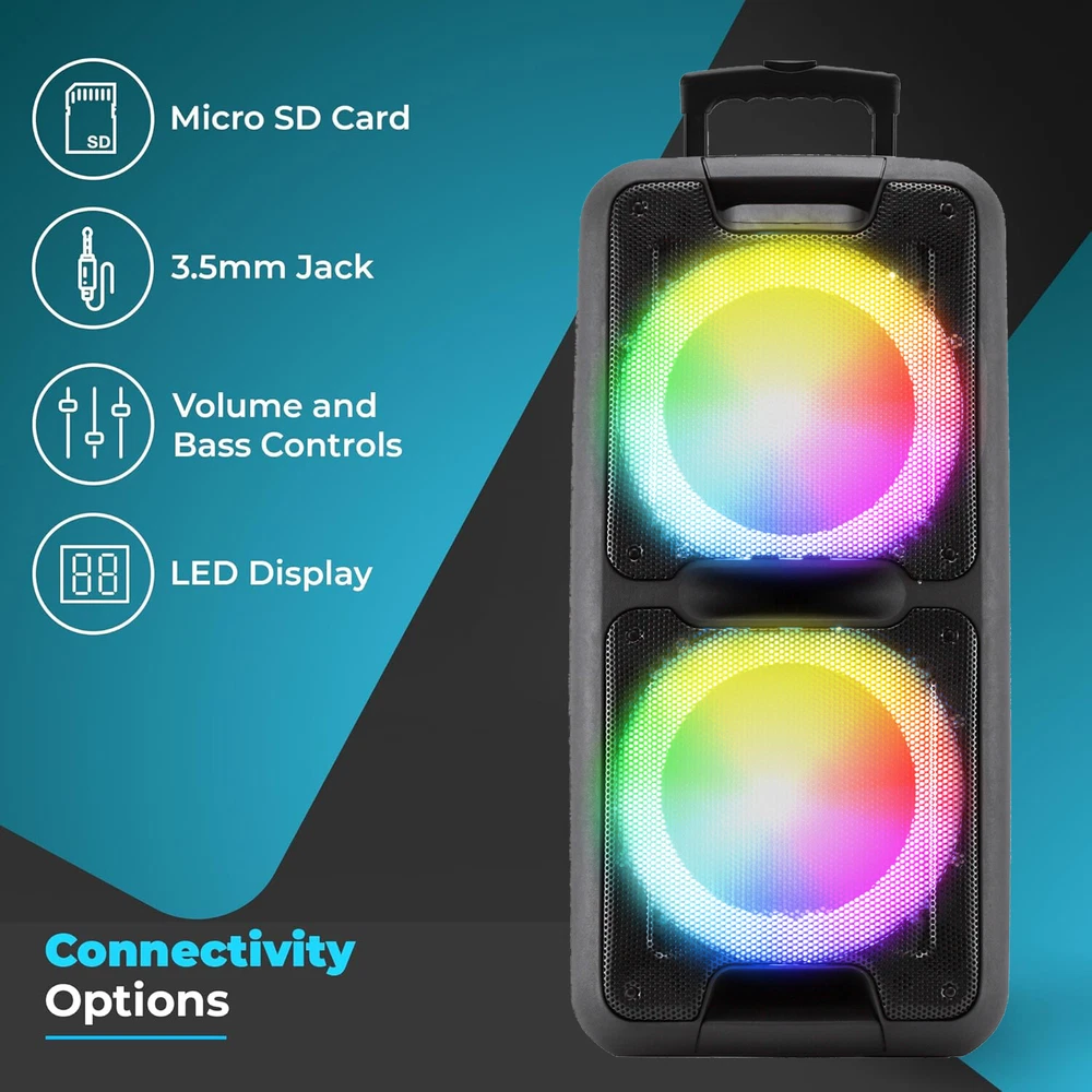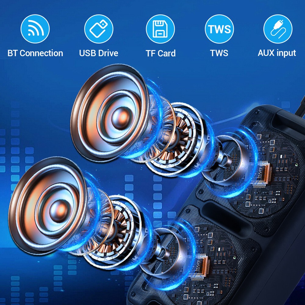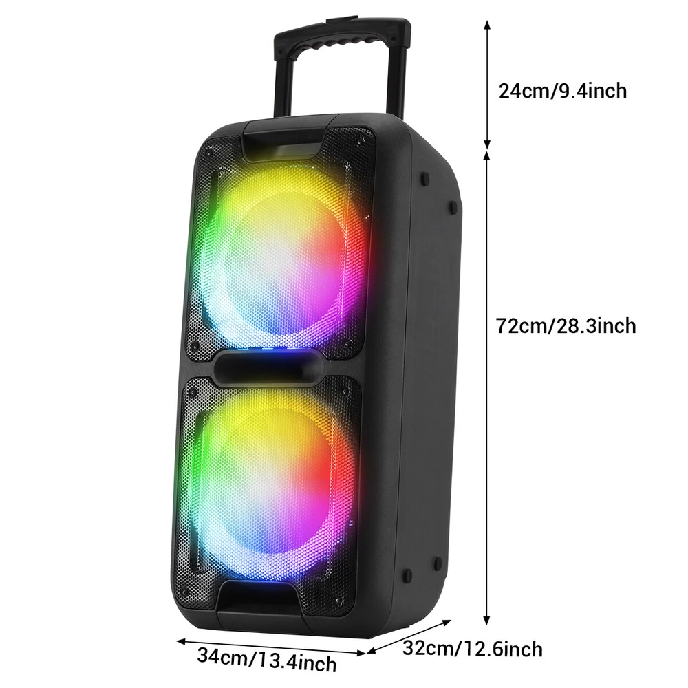 Dual 10'' Portable Bluetooth Speaker System TWS Karaoke Machine Rechargeable FM Feature: 1. Powerful Bass Sound: Bluetooth Speaker is equipped with dual 10-inch woofers and bass knob, which can provide clear, powerful sound and deep, resonant bass. Whether indoors or outdoors, you can experience rich music. 2. Portable speaker sound system, designed with multiple connection methods: The device provides you with multiple ways to listen to music, including connection via Bluetooth, SD card, TF card, USB and AUX cable. It can also play FM radio. Connect microphone and guitar. 3. Multi-function Bluetooth Speaker: Turn on the LED RGB light switch to create a party atmosphere, True Wireless Stereo (TWS) technology connects two speakers for stereo sound, and supports one-piece recording function. 5-band graphic equalizer can fine-tune your sound. 4. Easy to move: Built-in wheels and handles make it an ideal portable speaker for beach parties, barbecues and other activities. 5. Extended play time: Built-in 12V 7A rechargeable long-life battery ensures continuous playback for hours at events and parties. Perfect for outdoor parties, beach outings and all-day events. Specification: Size:13.4’’ x 12.6’’ x 28.3’’ Material: ABS Color: Black Number of speakers: 10 inches * 2 Input voltage: AC110-240V 50/60HZ Full charge: about 5 hours or more Play at maximum volume: 1.5 hours Functions: ✅Bluetooth connection, TF card, TWS, USB, AUX, SD card, FM Radio, ✅ LED Light switch, Bass, Mic Input, Guitar input, Recording, ✅ 5-Band Graphic Equalizer, Microphone echo/bass/treble/volume adjustment Package: Dual 10-inch Bluetooth speaker with trolley*1 AC charging cable*1 Remote control*1 English manual*1 3.5mm to RCA cable*1 Positive and negative cable*1 Delivery details Payment Terms of sales Feedback Contact us Delivery details 1. BUSINESS DAY MONDAY- FRIDAY FAST SHIPPING FROM USA. 2. All orders and payments received before 4PM EST (1PM PST) will be shipped the same business day. 3. No shipping on Saturday,Sunday or USA Public Holidays 4. No responsibility for any custom duty Payment We accept payment by PayPal only. Terms of sales 1. We offer a 60 day money back guarantee or exchange. 2. Buyer pays return shipping and we pay replacement shipping. 3. If you want to initiate a return,please contact us to get a returning address before sending the item back. Feedback 1. We strive to provide the best products and services. 2. Your positive feedback 5 stars DSR help us do better. 3. If anything about your transaction did not meet expectations, please CONTACT US and give us the opportunity to make things right. We are always here to help. Contact us Please do not hesitate to CONTACT US . You can message 24/7 on eBay for all questions and inquiries. We will get back to you within one business days at the latest from Monday- Friday.