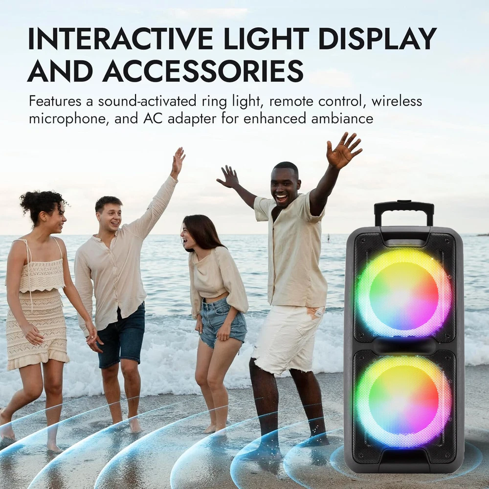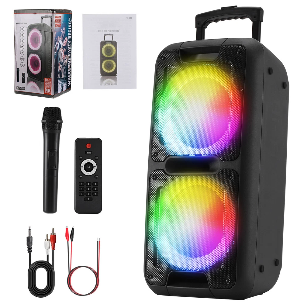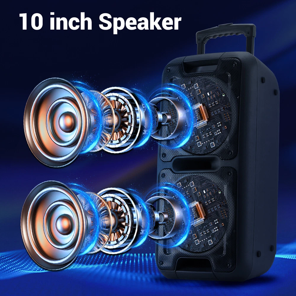 Dual 10" Woofers Bluetooth Rechargeable PA Speaker +Bluetooth +USB/SD/FM/EQ/LED There's plenty of powerful sound coming out of this Bluetooth speaker, but that's only a start in describing how this can make a party. As it plays the music, a spectrum of LED light patterns, ranging from pure white to rainbow, can pulse along to the music, syncing up with every beat.If you have music stored on a USB flash drive, simply plug it into the corresponding port, and you'll be able to easily listen to your favorite playlists. There's also an RCA line-in for connecting to CD players and other devices. With Built in Rechargeable Battery, Trolley Handle and Wheels allows you to take your Party anywhere! Features: ✨ Dynamic LED Neon Lights: Elevate your party atmosphere with vibrant neon LED lighting that syncs to your music, offering an immersive audio-visual experience. ✨ Versatile Connectivity & Playback: Stream your favorite tunes via Bluetooth, USB, SD, or Aux-in. Plus, the built-in MP3 player and two microphone inputs make it ideal for DJ sets and karaoke. ✨ Unmatched Sound Quality: Experience powerful, room-filling audio with the speaker's dual 10" woofers and X-Bass technology, delivering crisp, thunderous sound perfect for parties, outdoor events, and karaoke nights. ✨ Portable Design for Easy Transport: Featuring a trolley design with durable wheels and a retractable handle, the Speaker built for easy mobility, making it perfect for indoor and outdoor use. ✨ Complete Entertainment Package: Comes equipped with a wireless microphone and remote control, allowing you to manage your music and engage your audience from anywhere in the room. Specifications: Color: Black Material: molded PP plastic cabinet Charging time: 5-8 hours Play time: 6 hours (fully charged) Input Voltage: AC 110-240V 50/60Hz Output Power: 100W Battery Capacity: 12V/7A Rechargebale Battery Product Unit Size: 72*34*32cm/28.3*13.4*12.6inch Package Include: 1 X Dual 10in Speaker 1 X Wireless Microphone 1 X Remote Control 1 X 3.5mm to RCA Cable 1 X Power Cable 1 X Manual Payment Delivery details Terms of sales Feedback Contact us Payment Immediate payment is required. Shipping will be arranged within 1 business day once payment is cleared. To uphold a shipping speed, your order will be processed almost immediately. If you change your mind after your payment is confirmed, we will do our best to cancel the order, however, we CANNOT guarantee the cancellation. Delivery details FREE SAME BUSINESS DAY MONDAY- FRIDAY SHIPPING FROM USA. No shipping on Weekends or US Public Holidays. No responsibility for any custom duty. We will ship your order to your Ebay Verified address provided. Please verify your address and make sure that it is your current address before making your payment. Any address change requests after your payment CANNOT be guaranteed. Shipping information will be updated when available. All of our products can be shipped internationally. To confirm the shipping rates to your country please refer to eBay's Shipping Tab above. Any brokerage, customs, and duty fees associated with international shipments are the customer's responsibility and are not included in our shipping fee. A phone number is required for the customs documents. Failure to provide one will result in delays. We do not include an invoice or any advertising materials with our shipments. Terms of sales We stand behind our items and offer 60 days warranty. All items are in new and working condition unless specified otherwise elsewhere in the description. All Returns - defective or otherwise - MUST BE PREAUTHORIZED to guarantee refund or exchange. Please contact us to get an authorization and return address. Buyer agrees to pay for the cost of re-shipment for undeliverable or wrong addresses. Buyer is responsible for Return Postage if return/replacement is not a result of our mistake such as wrong item. Replacement or Refund will be made upon receipt of the returned item. Please include tracking number so we can process ASAP. If you do not wish to wait for a replacement, please repurchase the item. Feedback We strive to provide the best products and services. Your positive feedback 5 stars DSR help us do better. If anything about your transaction did not meet expectations, please CONTACT US and give us the opportunity to make things right. We are always here to help. Contact us Please do not hesitate to CONTACT US . You can message 24/7 on eBay for all questions and inquiries. We will get back to you within one business days at the latest from Monday- Friday.