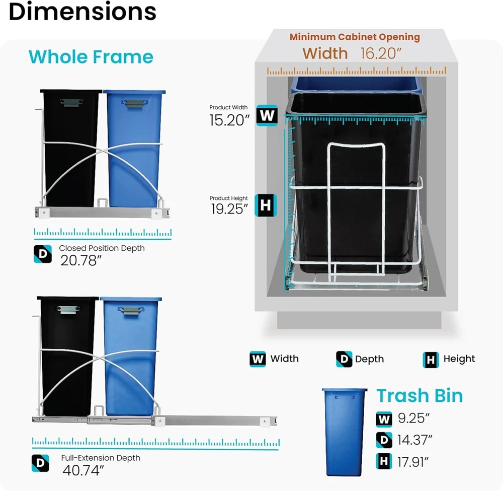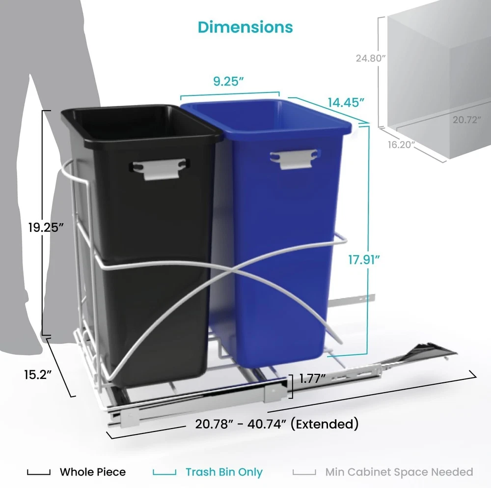 Dual Compartment 15 Gallon Pull-Out Kitchen Trash Bin for Organized Recycling ‹ › ‹ › ‹ › ‹ › ‹ › ‹ › ‹ › ‹ › Dual Compartment 15 Gallon Pull-Out Kitchen Trash Bin Organize your waste and enhance the functionality of your kitchen with this stylish and efficient Dual Compartment Trash Bin. Designed for easy recycling and hassle-free waste disposal, this pull-out bin will elevate your kitchen experience. Features: Dual Compartment Bins: Simplify your recycling efforts with separate compartments for waste and recyclable materials, allowing you to manage your household waste with utmost ease. Designed to be Hidden: Keep your kitchen looking its best by concealing the trash bin in-cabinet, ensuring a discreet yet easily accessible solution for waste management. Say Goodbye to Messy Trash Bags: Secure your bags effortlessly under the included rubber band on removable bins, eliminating concerns about spills or overflow for a cleaner waste disposal experience. Smooth Gliding Frame: Experience frustration-free access with smooth ball bearing gliders and a convenient handle, allowing for effortless sliding of the trash bin in and out of your cabinet. Item Dimensions: 20.78” x 15.20" x 19.25"; full extended length is 40.74". Minimum Cabinet Dimensions Required: 21.78” x 16.20" x 24.80". USA Based Support: Our commitment is to ensure your complete satisfaction; reach out to us with any questions or feedback via our website or social media. Why choose our Dual Compartment Kitchen Trash Bin? Transform your kitchen's waste management with our Dual Compartment 15 Gallon Pull-Out Kitchen Trash Bin. Offering an elegant and practical solution to keep your kitchen organized, this bin helps you stay on top of your recycling effortlessly. The sleek design ensures it remains out of sight, while the high-quality materials and smooth gliding features provide the exceptional usability you deserve. Make the conscious decision to simplify your kitchen experience! Order your Dual Compartment Trash Bin today and enjoy a tidier, more organized space for years to come. Shipping Free & Fast Shipping - We offer free shipping to most of the USA with a normal delivery time of 3-7 days. However, due to the current situation, additional delivery time (up to 3 weeks) may be required for some items. Alternative Carriers - We may use alternative carriers (e.g. USPS, FedEx, UPS, etc.) to ensure your package arrives safely and on time. Due to the use of multiple carriers, we are unable to provide a tracking number automatically. Handling Time - Orders are processed and shipped within 1-2 business days of receiving cleared payment. Shipping Restrictions - Shipping to Alaska, Hawaii, Puerto Rico, Guam, and other US territories may incur shipping charges or delivery restrictions. Please contact us before ordering, or your order can be refunded/cancelled. State Restrictions - There may be restrictions based on your state of purchase. For example, certain items may not be shipped to California due to state regulations. Contact for Tracking Updates - If you require tracking updates or have any concerns about the delivery of your order, please feel free to contact us, and we will be happy to assist you. Return 30-Day Hassle-Free Returns - We want you to be completely satisfied with your purchase. If you are not, you can return the item within 30 days of receiving it for a full refund or exchange. Easy Return Process - To start a return, simply contact us and we will provide you with a prepaid return shipping label and detailed instructions. Restocking Fee - There are no restocking fees for returns. However, the buyer is responsible for return shipping costs if the return is not due to a seller's error. Refund Processing Time - Refunds will be processed within 5 business days of receiving the returned item in its original condition. Payment We accept all major credit cards, PayPal, and Apple Pay for your convenience. Your payment information is secure and encrypted to ensure a safe and seamless transaction. Please complete your payment within 3 days of purchase to avoid any delays in shipping. Feedback Your feedback is extremely important to us. We strive to provide the best products and customer service possible. If you are satisfied with your purchase, please take a moment to leave us a positive review. If you have any concerns or issues with your order, please contact us before leaving negative feedback. We are committed to resolving any problems and ensuring your satisfaction. Contact Us If you have any questions or concerns, please feel free to reach out to our customer support team. You can contact us through the eBay messaging system. We are available Monday to Friday, 9:00 am to 5:00 pm EST, and we will do our best to respond to your inquiry within 24 hours. Thank you for supporting our small family business! UPC: Not Set Unit Quantity: 15 gal Room: Kitchen Material: Plastic,Steel Features: Removable Compartment,In-Cabinet Design,Dual Compartment Bins,Smooth Sliding Mechanism,Easy Bag Swaps Suitable For: General Waste,Recycling,Trash Brand: Unbranded Item Height: Kitchen Trash Can Item Length: Kitchen Trash Can Item Width: Kitchen Trash Can Type: Compartment Trash Can Color: Dual Capacity: 15 gal Size: Large Number of Compartments: 2 Model: Not Set Item Weight: 13.67 lb MPN: Not Set Shape: Rectangle Style: Modern Country/Region of Manufacture: Not Set Pattern: Not Set Finish: Smooth Unit Type: gal Personalize: Not Set