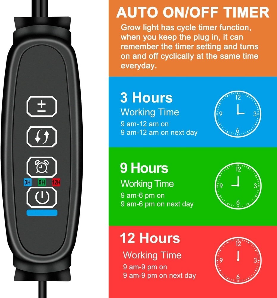 Full Spectrum Dual Heads Clip Grow Lights for Indoor Plants with 3/9/12H Timer Dimmer and 10 feet Cables for Plant Growing(Adapter Included) Item Description About this item Sunlight Spectrum: Equipped with 6000 K white,3000 K warm white and 660 nm red, This plant grow light is similar to the sunlight at noon. Very suitable for indoor garden plants. Unique design, no dizzy light, no flicker when the only white light on. More Brightness: Comparing with other plant grow lamp in the market , our plant lamp have double the number of lamp beads. It has almost double brightness than others. Timing and Dimming Function:This indoor seedling light offer the circular memory timer function with 3 options-3/9/12H. When keeping power on , it can automatically turn on and off every day according to your settings.【 You Could Operate One of Them Separately and Support 10 Levels of Dimming.】 Multi-ways to use : With non-slip sturdy clamp and 360 degree flexiable gooseneck, and the total length of the wire is 10 feet, The grow light clip can be fixed well on anywhere, up to 3 inches. There have a hole on the clamp base, you can fix the grow light on the wall also. Quanlity and Service: We offer 365 days warranty and 24h friendly customer service. If there are ever any issues about the product, please feel free to contact us and we will send you a new replacement. › See more product details Help plants with chlorophyll synthesis,good for germination, seeding starting . Similar to the sunlight at noon, contribute to vegetable, flowering etc. Best for flowering, fruiting&blooming which need more energy. The Grow Light clip can be attached to any compatible surface of up to 2.5 inches/6.35 cm. The gooseneck has 14 inch length.it allows you to place the clip grow light in any direction to provide the best lighting angle for your plants and adjsut the distance between light and indoor plants. To increase the intensity of light, we design 80pcs LEDs for dual-head grow light. The Qty of leds is double than other grow lamp in the market . It resolves the brightness problem for the clip grow light. 10 feet (3m) length controller cable is more convenient to use. You can put the light anywhere even the wall outlet is too far from your desk. You can tie the wire up if you think the cable is too long. Clip grow light is a good helper for your indoor plants. Suitable for dark room, living room, office, balcony, ect, especially for succulents, basil, orchid, bonsai,bamboo etc indoor live plants There has square hole at the bottom of the clip, It can be fixed on the wall or clamped on a table or shelf, which is very convenient. PAYMENT SHIPPING RETURN We accept payment only through PAYPAL We ship products worldwide through standard express courier service, it will reach within 7 to 10 days to abroad buyers, we ship the product after recieved clear payment and give full information about shipment to the buyer We accept product return within 7 to 21 days from delivery date but product should be in original position and not in damaged condition,the return shipping charges will be buyer responsibility