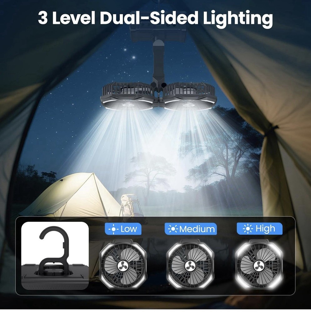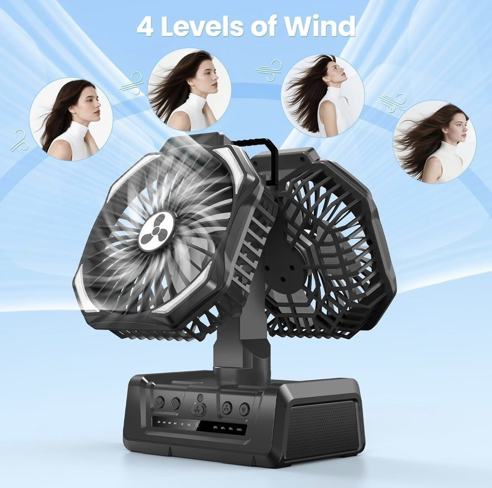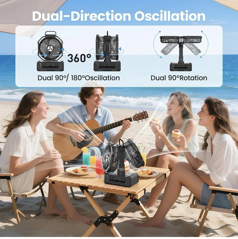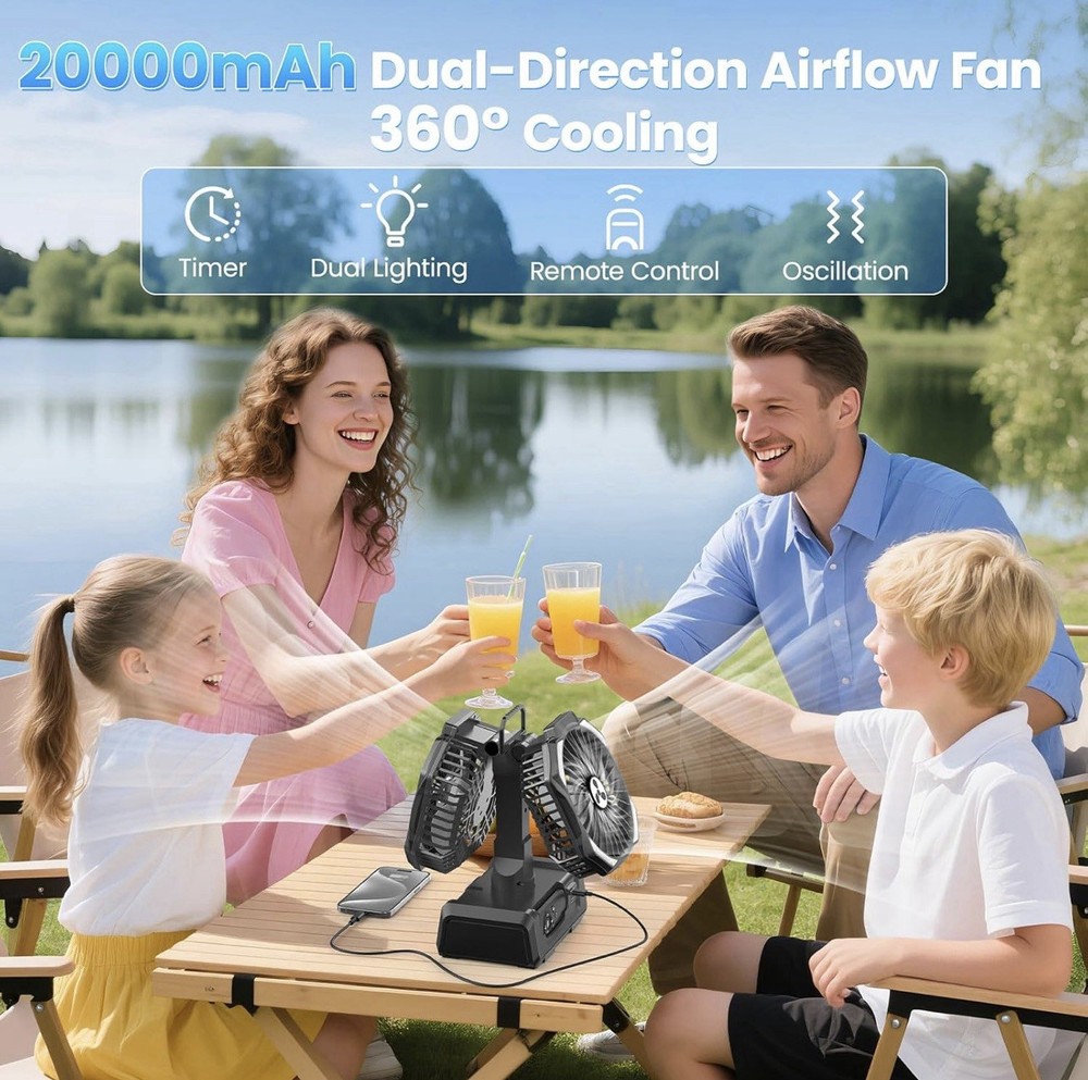 Dual Head Portable Rechargeable Fan 20000mAh Battery Powered Fan Camping Cordles
