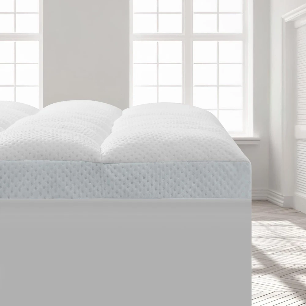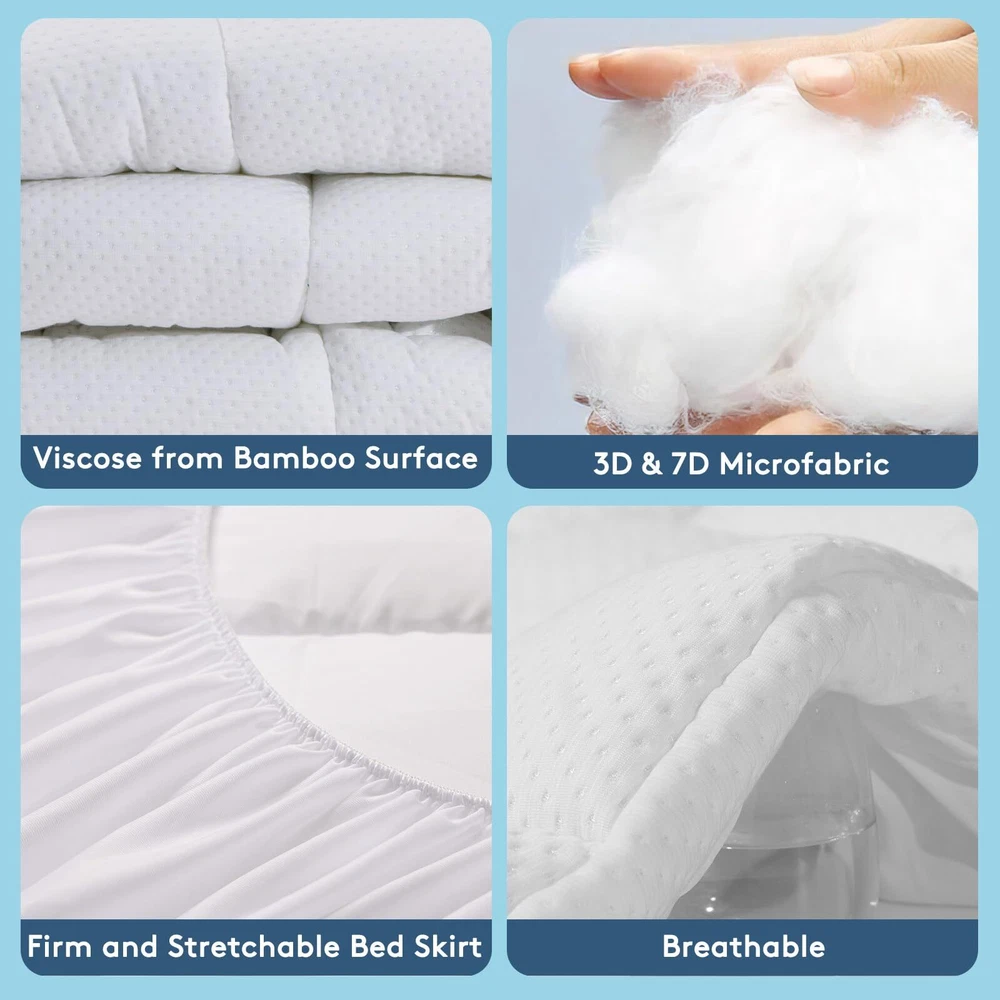 2 In 1 DUAL LAYER DESIGN - This luxurious dual layer mattress topper features a 2-inch cooling gel memory foam mattress topper and a 2-inch quilted cooling and breathable 40%viscose made from bamboo+60% polyester pillow top cover with 3D snow down alternative filling. When combined, it can become a 4-inch thick mattress topper, which not only has strong support, but also provides a cloud-like comfortable experience RELIEVE PAIN & IMPROVE SLEEP - The 4-inch buffer space fits the body curve, so that your shoulder, neck, back and spine can be in the most relaxed state, so as to relieve pain. The medium firm mattress topper and the cushion of the mattress pad cover give you the best sleep experience COOLING & BREATHABLE - The cloud-like surface with 40%viscose made from bamboo+60% polyester fiber made Three Dimensional Structure added to provide excellent breathability without extra heat and sweat caused by memory foam or traditional mattresses. The high-quality cooling gel infused memory foam further ensures a cool and breathable sleeping environment VISCOSE MADE FROM BAMBOO PILLOW TOP COVER - High-density 40%viscose made from bamboo+60% polyester fiber made mattress pad is durable, no risk being ripped even with frequently washing. Wash it regularly to keep your mattress clean and free of stains. The fitted elastic bed skirt holds the memory foam layer in place to perfectly wrap 8 to 21 inch mattress AFTER SALES - Before first use, please take out the foam memory and the mattress pad, lay them flat in a well-ventilated area for 48-72h to remove the slight smell of the foam memory and restore the fluffiness of the mattress pad. We will provide a 10-year warranty service. You can contact us directly to get a satisfactory solution
