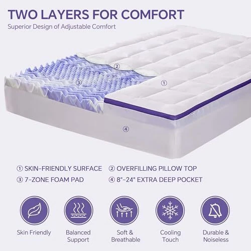 Return Policy Fast Delivery Trusted seller Dual Layer 4 Inch Memory Foam Mattress Topper Queen - 2 Inch Gel Memory Foam and 2 Inch Pillow Top Mattress Pad, 7-Zone Egg Crate Mattress Topper for Back Pain Product Description Dual-Layer Design: Our mattress topper features a 2-inch cooling gel-infused memory foam pad and an additional 2-inch quilted pillow top cover filled with ultra-soft down alternative fiber. Comfortable Support: The 35D foam with an egg-crate pattern provides cushioning and pressure-relieving support, making it ideal for those with chronic pain. The topper molds to your body shape, distributing weight evenly for ultimate support. Cooling & Breathable: The ultra-soft fabric and premium gel-infused memory foam create a cooling and breathable sleep environment without noise or movement. Removable & Washable: The mattress topper comes with a skin-friendly, removable mattress cover that is machine washable and tumble dry low for a fresh and hygienic rest. Luxurious Sleep Experience: offers a commitment to providing exclusive, comfort-driven creations. Before first use, place the mattress cover in a well-ventilated area for 24-48 hours until it fully rebounds. Any slight new foam smell will dissipate over time. Shipping Returns Payment Shipping Shipping is FREE to all addresses other than APO/PO boxes in the lower 48 states. All our stock ships from US-based warehouses. Shipped via USPS or UPS (depending on location and package weight) Unless stated otherwise, all orders will ship within 24-72 hours of your payment being processed. Check our feedback to see the great reviews of FAST shipping we offer. Returns Seller does not accept returns Payment We currently accept payment via eBay managed payments only. Once payment is cleared, we will dispatch your shipment within 1-3 business days. Please refer to the "Shipping" tab for more information regarding shipping speed to your destination.