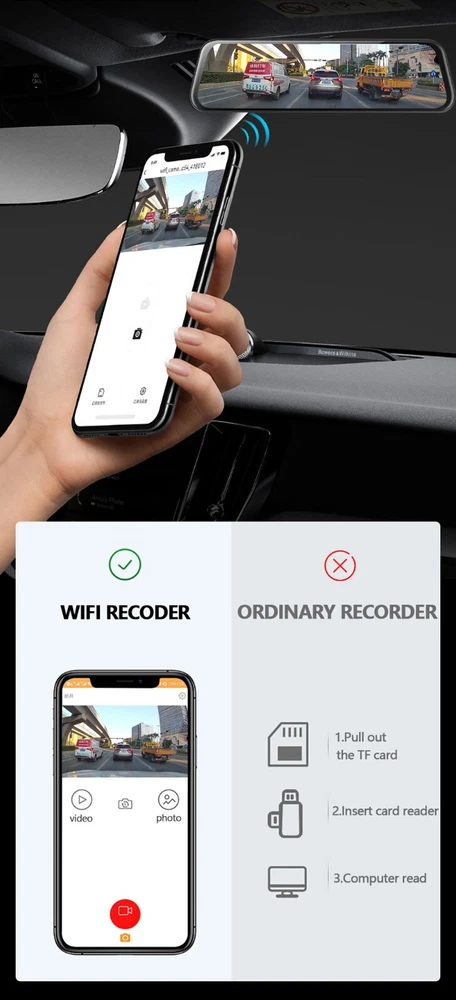 Product Description 10 Inch 2K 1440P Car DVR Mirror Dash Cam Dual Lens Dashcam Full Hd Drive Recorder Stream Dash Car Camera RearView Mirror Add our listing to Watchlist Or Add to Cart , you will get more discount 10in Car Rearview Camera Stream Media DVR Mirror Touch Screen FHD 2K 1080P Dash Cam Recorder DVR Dashcam Specifications Screen Size:10 InchStream Media display Chipset:Original chip FHD recording Super Night Vision Camera Resolution:Front Camera:12MP, 1920*1440P; Back Camera: 8.0MP,1080P Camera View Angle:Front Camera: 170 Degree;Back Camera:140 Degree Camera Aperture:F2.2 Large Aperture(Front Camara) Video Code:AVI OSD Languages:Russian English Japanese Korean Danish French Czech Polish Portuguese Dutch Turkish Thai Chinese(If you want other languages,tell us,we will help you add it) Features:G-Sensor,Digital Zoom,Motion Detection,Cycle Recording,Time&Data Display,With Rearview Mirror 2 Camera Lens:Front And Rear Camera Lens Can Record Simultaneously,support picture in picture display Front Camera Lens:Full 6 Glasses Camera Lens Night Vision Rearview Camera Lens:Give a rear view camera cable (about 6 meters) Recording:automatic records when car power is on, auto power off when car off . Parking Monitor:Support,suggest buy a transformer line for 24 hours Parking control(not inclued ) Features 2K FHD-clear screen 2560*1440P ultra-clear picture, whether it is day or night, you can shoot clear videos without missing every detail Easy installation The body is small and exquisite, easy to install, and does not block the line of sight, just like being integrated with the car Watch the video on the phone You can control the DVR by connected mobile phone via WiFi, like recording video, the file recorded video from the overwriting.taking photo, playback preview,parameter settings, etc. 10 inch Streaming The large screen and waterproof lens make it possible to see the situation behind the car clearly even in heavy rain, ensuring driving safety Package List 1. Recorder 2. Charger 3. Rear camera (including cable) Payment Returns Contact Us Shipping We accept payment by PayPal only ! Payment should be completed within 5 days after buyer places the order,or else an unpaid case will be opened in order to cancel the transaction. If you can not pay in time, please contact us. e-check from PayPal will only be processed once the payment clears. All of the items will be shipped to buyer's EBAY address,please confirm your address on Ebay before you buy.Your order will be usually shipped out the same or next business days once the payment is made and cleared. 30-day Warranty with Exchange for defective, malfunctioned, incorrect or parts-missing items. Please notify us and return the item with all parts and accessories packed and marked "FOR EXCHANGE" within 14 days of receipt. If defective, malfunctioned or parts-missing items are no longer available, a refund may be issued. All returning postage costs will be the responsibility of the buyers under all circumstances. If you encounter any problems about anything, please feel free to contact us and we will do our best to assist you solve the issue. If you are not satisfied in anyway, please feel free to let us know and give us a second chance to correct it before you decide to leave any neutral or negative feedback. Please contact us through eBay link if you have any questions. We will reply you within 24- 48 hours. Please check you spam mail if no response for 48 hours. All items will be checked before packing. All items are new and of high quality. Item will be shipped within 1 business days upon receipt of payment, excluding weekends and public holidays. If to USA,we will ship your order by USPS,it will take about 8-12 working days to you,and you can track it on line. If to other country,we will ship your order by China Post or Singapore Registered Air Mail,it will take about 14-21 working days to you,you aslo can track it on line. Delivery time is about 14-28 business days and it may take up to 8 weeks . Payment We accept payment by PayPal only ! Payment should be completed within 7 days after buyer places the order,or else an unpaid case will be opened in order to cancel the transaction. If you can not pay in time, please contact us. eCHECK from PayPal will only be processed once the payment clears. All of the items will be shipped to buyer's EBAY address,please confirm your address on Ebay before you buy.Your order will be usually shipped out the same or next business days once the payment is made and cleared. Returns 30-day Warranty with Exchange for defective, malfunctioned, incorrect or parts-missing items. Please notify us and return the item with all parts and accessories packed and marked "FOR EXCHANGE" within 14 days of receipt. If defective, malfunctioned or parts-missing items are no longer available, a refund may be issued. All returning postage costs will be the responsibility of the buyers under all circumstances. Contact Us If you encounter any problems about anything, please feel free to contact us and we will do our best to assist you solve the issue. If you are not satisfied in anyway, please feel free to let us know and give us a second chance to correct it before you decide to leave any neutral or negative feedback. Please contact us through eBay link if you have any questions. We will reply you within 24- 48 hours. Please check you spam mail if no response for 48 hours. Shipping All items will be checked before packing. All items are new and of high quality. Item will be shipped within 1 business days upon receipt of payment, excluding weekends and public holidays. If to USA,we will ship your order by USPS,it will take about 7-10 working days to you,and you can track it on line. If to other country,we will ship your order by China Post or Singapore Registered Air Mail,it will take about 14-21 working days to you,you aslo can track it on line. Delivery time is about 14-28 business days and it may take up to 8 weeks . Welcome to