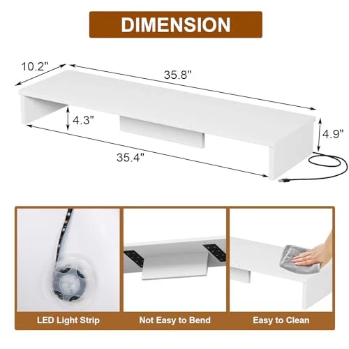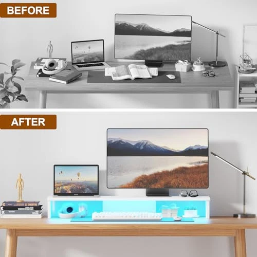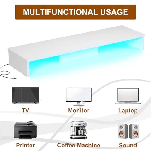 Menu 1. We require immediate payment. 2. We currently accept payment via eBay managed payments only. 3. Once payment is cleared, we will dispatch your shipment within 1-3 business days. Please refer to the "Shipping" tab for more information regarding shipping speed to your destination. Dual Monitor Stand Riser with LED Lights, Large Monitor Stand for Desk, Computer Monitor Stand for 2 Monitors, Desk Shelf for Top of Desk, Desktop Organizer for Laptop, Printer, TV, White Product description Ergonomic Monitor Stand Riser: This dual monitor stand raises your monitors to eye level, promoting good posture and reducing neck, shoulder, and back strain. The 35.8" x 10.2" platform is ideal for most monitors, laptops, and printers Upgraded Monitor Stand for Desk: The monitor riser comes with an adjustable LED light strip, remote control, and USB cable, offering 22 dynamic modes, RGB colors, and adjustable brightness. Ideal for office and gaming spaces, it meets various mood needs High Quality Materials: Crafted from durable engineered wood, this monitor stand is sturdy with a scratch-resistant finish, ensuring long-lasting use. The bottom features added support to prevent deformation, maintaining its good condition over time Versatile Use: This dual monitor stand can hold monitors, printers, laptops, and TVs, or serve as a desktop shelf. The space beneath is perfect for storing keyboards, mice, notebooks, and other items, helping to keep your desk tidy and organized Easy to Assemble: This monitor stand is simple to build, requiring no tools. It suits various settings like home offices, student desks, and gaming setups. Its sleek, minimalist design fits seamlessly into any décor, enhancing both style and function PLEASE MESSAGE US IF YOU HAVE ANY OTHER QUESTIONS, AND MANY THANKS FOR READING ALL OF THIS. Copyright ©#. All Rights Reserved.