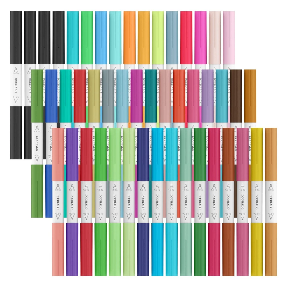 PEN FOR CRICUT : Only work with Cricut Maker 3/Maker/Explore 3/Air 2,dual tip marker pens perfectly meet your demand in the drawing, coloring and writing. COLORED PEN PACK: Total 34 unique selection and 2 EXTRA black color in the pack, Primary colors Variety of colors to use with Cricut Machine which is a basic Accessories for Cricut art creative project.Pen with Water based non-toxic ink could be Long lasting and quickly dry, bring your project with brilliant and vibrant color looks. EASY TO USE: Pen set suitable for adult and children in card making, drawing , coloring, sketching, doodling, Bullet journal, calligraphy hand lettering. Ideal for homemade cards decorations, invitation and another drawing coloring craft projects. It is great for DIY crafts to create unique gifts for friends or families. DUAL TIP COLPRING TPENS: Dual tip Coloring Pens comes with 0.4 fine point tip and 1.0 brush tip, The Fine point tips can be conveniently accurate line control, and the brush tip are perfect for the coloring, both tips are superior color blending and flexibility of smooth of smooth pen stroke, easy to control in drawing with thick or think line. STORE AND PACKING: Well Package case could have a good organized storage plastic case for your pens, which make it portable and well management for your school, travel and daily using.