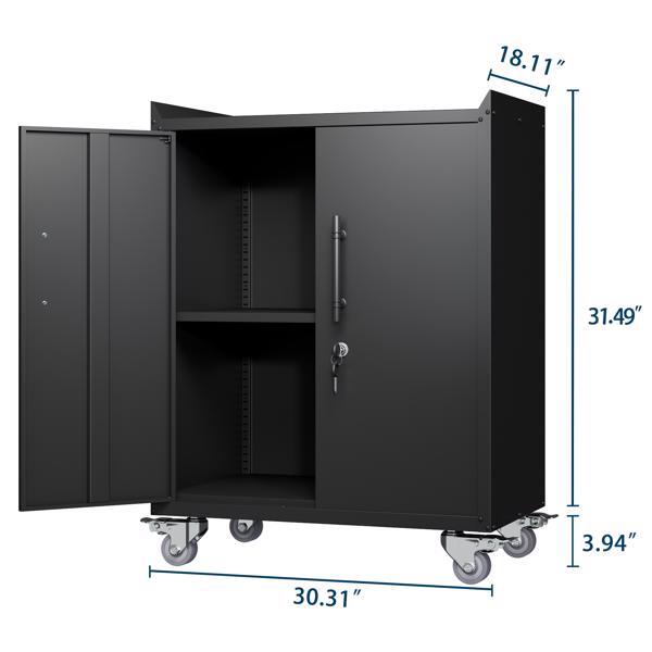 Dual Tool Garage Cabinet with Locking Storage Wheels Rolling Chest Assembly H35 W3