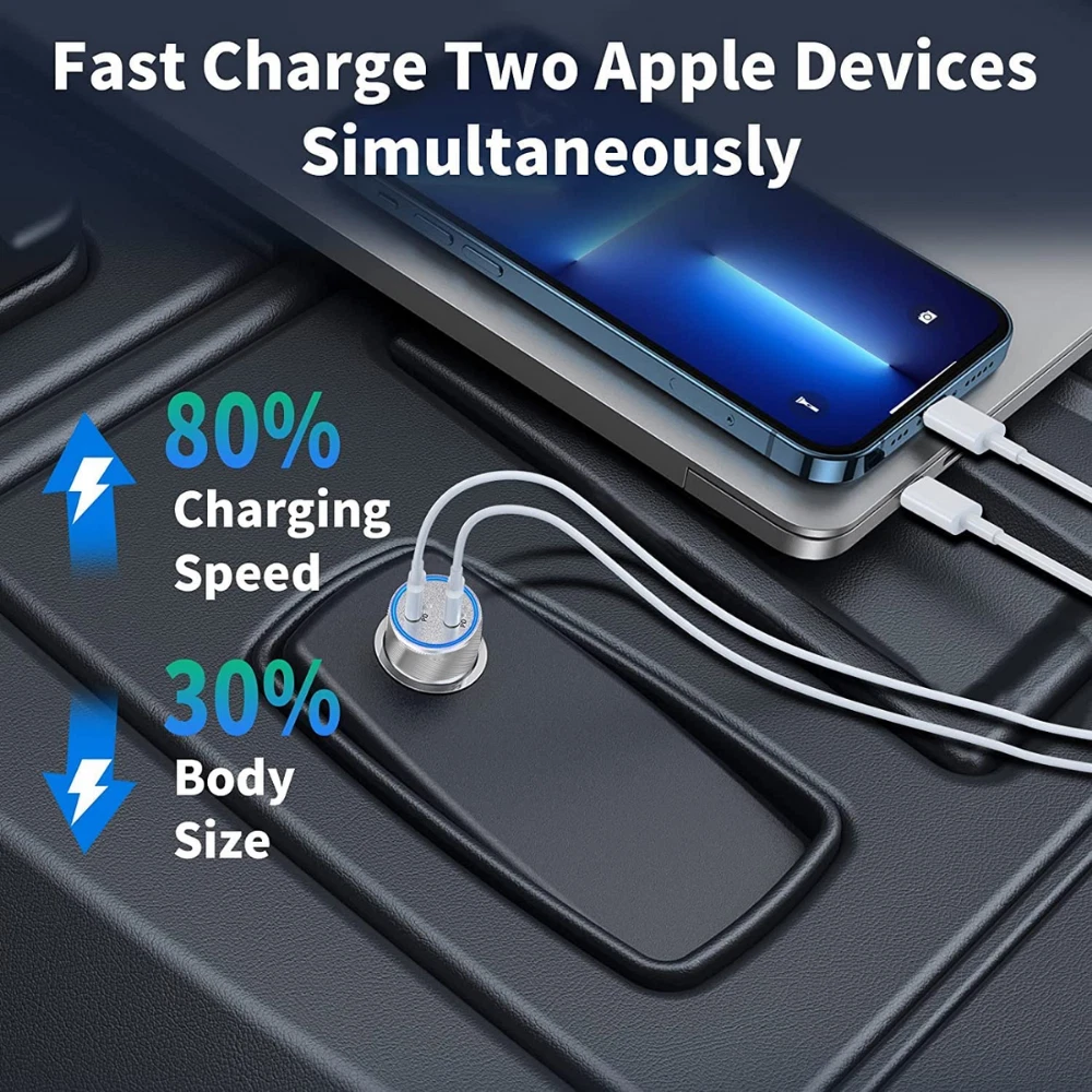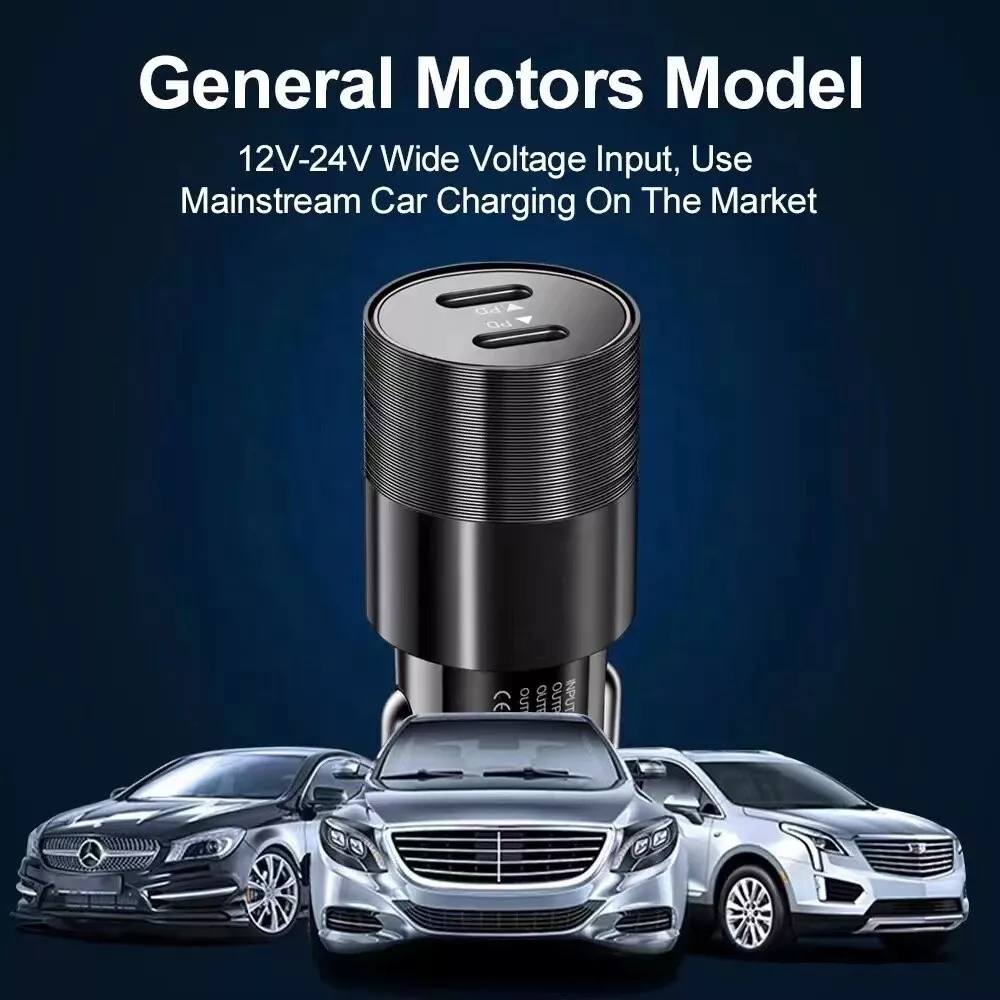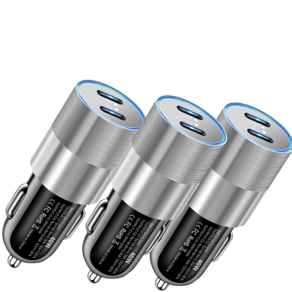 Product specification: Input : DC 12V-24V Output : C1 5V=3A 9V=2.25A 12V=1.67A Output : C2 5V=3A 9V=2.25A 12V=1.67A Output : C1+C2 20W+20W Dual ports fast charging: The on-board charger is equipped with 2 USB C ports, which can charge two devices at the same time.Can charge 50% of the iPhone 12 in about 30 minutes, 2.5 times faster than the standard charger. Safe and reliable: The aluminum alloy shell is easy to dissipate heat, better protect the chipset, anti scratch and long service life. The intelligent circuit design of USB car charger can prevent short circuit, overheating, overcurrent and overcharge. Unique design: You can know the charging status through the LED indicator and help to unplug the USB cable, or unplug the car adapter from the cigarette lighter at night. Portable design: The compact and lightweight design takes up almost no space and can be easily carried anywhere. Plug and charge,suitable for daily use or travel. Universal compatibility: For iPhone 8/8 Plus For iPhone X/XR For iPhone XS/XS Max For iPhone 11/11 Pro/11 Pro Max For iPhone 12 Mini/12/12 Pro/12 Pro Max For iPhone 13 Mini/13/13 Pro/13 Pro Max For iPhone 14/14 Plus/14 Pro/14 Pro Max For iPhone SE(2020)/SE(2022) For iPad 4/5/6/7/8/9 For iPad Mini 1/2/3/4/5/6 For iPad Air 1/2/3/4 For iPad Pro For Macbook Air/Macbook Pro For other USB C devices,such as for Samsung/for Google/for Huawei/for Xiaomi/for HTC/for LG,etc.