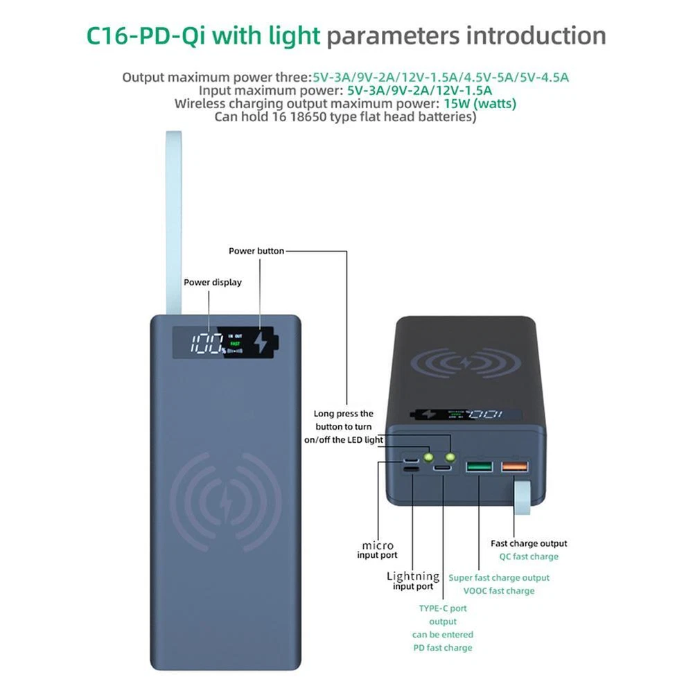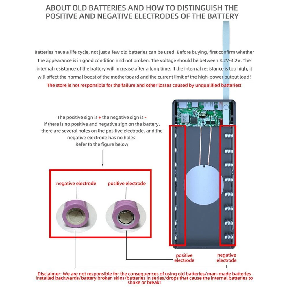 Description Description&Preview shipping&policy Description: Removable welding-free 16-cell 18650 battery power bank kit Note: Batteries not included With light: output/input maximum power: 5V-2.1A Wireless charging with light: output/input maximum power: 5V-2.1A wireless charging 5w PD interface with light: output/input maximum power: 5V-3A 9V-2A 12V-1.5A PD interface wireless charging with light: maximum output power: 5V-3A 9V-2A 12V-1.5A 4.5V-5A 5V-4.5A wireless charging 15w Input maximum power: 5V-3A 9V-2A 12V-1.5A 4 versions with reverse polarity protection include:1pcs power bank kit (without battery) Preview: Thank you for your purchase Problems? You can follow below process to contact us. There is a time zone difference,but we will do our best to quickly response to your questions: Shipping ● We will arrange shipping for you within 24 Hours after payment cleared except the holidays. ● We always send the item to the address you give us on Payoneer to ensure the security of the item. If you have changed your address, or want us to ship to another address, please change to the new address when you pay us with Payoneer, otherwise we will not be responsible if the package is lost. Payments We accepts Payoneer only If you have any questions about the payment,please contact us through eBay message. Import Duties In case some duty is due Upon delivery, it is your responsibility to meet that expense and this may cause delays to delivery schedule and you may have to pickup goods at the customs office. Terms & Conditions By bidding on this item,the Buyer agrees to all of the terms and conditions as outlined in this listing .please ensure to read and agree to All eBay terms and Conditions before bidding. All pictures are for illustration purpose only and Colours may vary slightly. Our store obeys all eBay Rules and Policies. Returns Policy To Return an item you must contact us and take photos of your item to clearly show any damage or unusual aspects of it. Approved returns will be subject to inspection on arrival. Items must be returned in original condition with all original packaging. All shipping and handing charges are non-refundable Return delivery costs are the responsibility of the buyer. We will cover the cost if sending replacement/repaired items. Within 7 days after receiving your products, we offers a no-hassle 7 day exchange/replace only if your items are found to be defective by manufacturer.