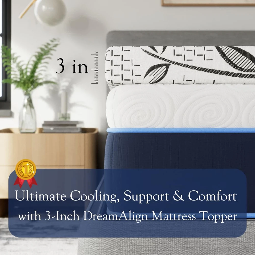 ZONED SUPPORT TO KEEP YOUR SPINE ALIGNED: unlike other toppers, the DreamAlign has 3 targeted zones of support. We tend to be heavier in our midsections, so we need more support in this area. The DreamAlign's middle zone is slightly firmer than than the top and bottom, ensuring that your spine remains in neutral alignment and relieving your back pain. DUAL LAYER FOAM FOR COMFORT AND SUPPORT: The DreamAlign has two layers, the comfort layer and the support layer. The comfort layer is a pressure point relieving proprietary memory foam that distributes your weight evenly across the topper's surface. The bottom layer is a zoned support foam that ensures your spine stays in neutral alignment all night long. COOLING COVER: Our cooling cover regulates your temperature while wicking moisture away from your body ELASTIC STRAPS TO KEEP IT IN PLACE: No more of your topper slipping and moving around your mattress. Our elastic bands wrap aroud your mattress and keep the topper in place all night long. 100% Made in the USA: Sleep soundly knowing that your topper was designed and manufactured entirely in the USA, in our factory in Phoenix, Arizona. MULTI-PURPOSE: Dosaze DreamAlign is a breeze to set up anywhere. It is ideal for dorm rooms, camping, recreational vehicles, overnight guests & more.