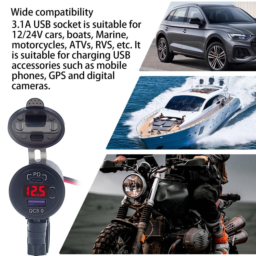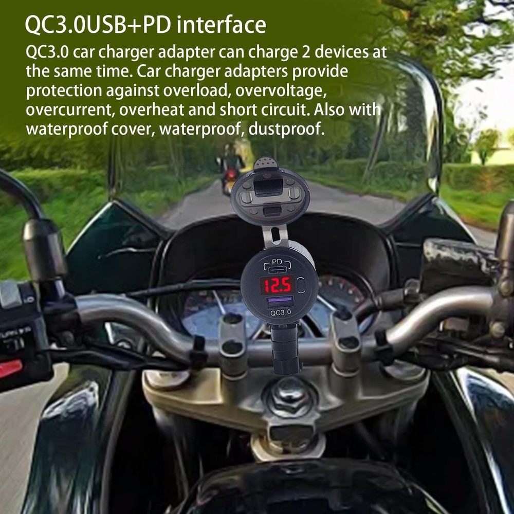 Motorcycle USB Charger Double Port Motorcycle USB Phone Charger vividly Feel free to contact me with additional questions. Have a nice day! Bullet Points: Safety First: Power up 2 devices on the go with this motorcycle USB charger. Enjoy safe and efficient charging with built-in protection against overload, overvoltage, overcurrent, overheating, and short circuit issues. Useful Design: The LED voltmeter display informs the battery status and facilitates locating the USB port in low light. Say goodbye to unexpected low battery issues! Strong PC: Constructed from PC material, our motorcycle USB charger is stable, fire-resistant, and dependable in harsh weather conditions, ensuring unparalleled safety for your devices. Convenient to Install: This motorcycle USB charger is easy to install, featuring a touch control for convenient use, ensuring a seamless and efficient charging experience. Extensive Compatibility: Charge USB accessories like smartphones, GPS, and digital cameras in any 12/24V vehicle, boat, motorcycle, or ATV. Keep your devices powered up on all your outdoor adventures. With overload, overvoltage, overcurrent, overheating, and short circuit protection, our USB charger for motorcycle ensures utmost safety. Specification: Product name: QC3.0+PD fast charge Control: button Product color: black LED color: blue, red, green Product material: flame retardant nylon material, copper Wiring instructions: "+" connects to the positive pole and "_" connects to the negative pole Reverse protection: This product has reverse protection Input voltage: 12V-24V Working temperature: -40 degrees to 80 degrees Product application: rearview bracket, handlebar bracket, screw Product features: anti-flame retardant, high temperature resistant, not easy to deform Output: QC3.0: 18W PD3.0: 30W Pack List: Motorcycle USB charger*1 1. Items are AU stock. 2. All items will be shipped within 3-5 business day upon receipt of payment. 3. It usually takes approximately 5-10 business days to receive order, not include weekend and holiday. 4. Delivery time depends on postal process and other factors; 5.If you do not receive your item on time, please contact us immediately for further assistance. We will be responsible for any damages or losses incurred in the shipping process. Seriously promise: Refund or resend will be offered if item still not arrive in 10 business days. Just send us an email ,we will give you a satisfied solution as soon as possible. 1.sure EVERY CUSTOMER 100% SATISFIED and resolve any problem for you and always leave positive feedback for all our customers. 2.If you are satisfied with the product you received, please leave us positive feedback and FIVE STAR DSR. 1. We maintain high standards of excellence and strive for 100% customer satisfaction! Feedback is very important to us. 2.We request that you contact us immediately BEFORE you give us neutral or negative feedback, so that we can satisfactorily address your concerns. 3. As reliable seller with high credit ratings, we will try our best to offer better and better services, and give our best resolution.pastingpasting.