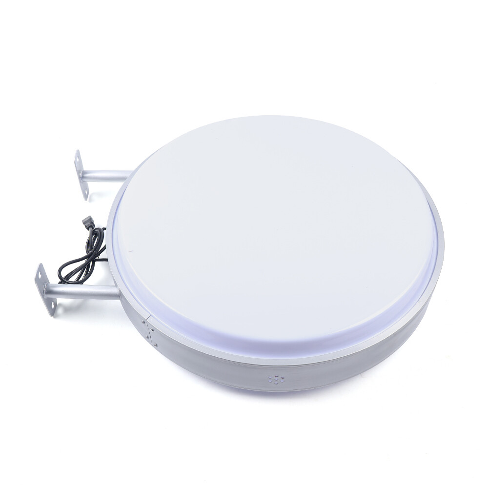 Flutter Flag Style: N/A Personalize: No Item Material: Frame aluminum alloy + iron bracket + acrylic panel Surface Material: N/A Type: Illuminated Sign Panel Thickness: 1.6mm/0.06inch Bracket length: 10cm / 4 inches Personalized: No Illumination Type: LED Sign Style: Billboard Item diameter: 60 cm / 24 inches Item depth (thickness): 14cm / 5.5 inches Lighting source: LED lamps Voltage: 110V Industry: Retail gtin13: Does not apply UPC: Does not apply Features: Double-sided Note: We Only Provide LED Double Sided Round Light Boxes Display area: 55cm
